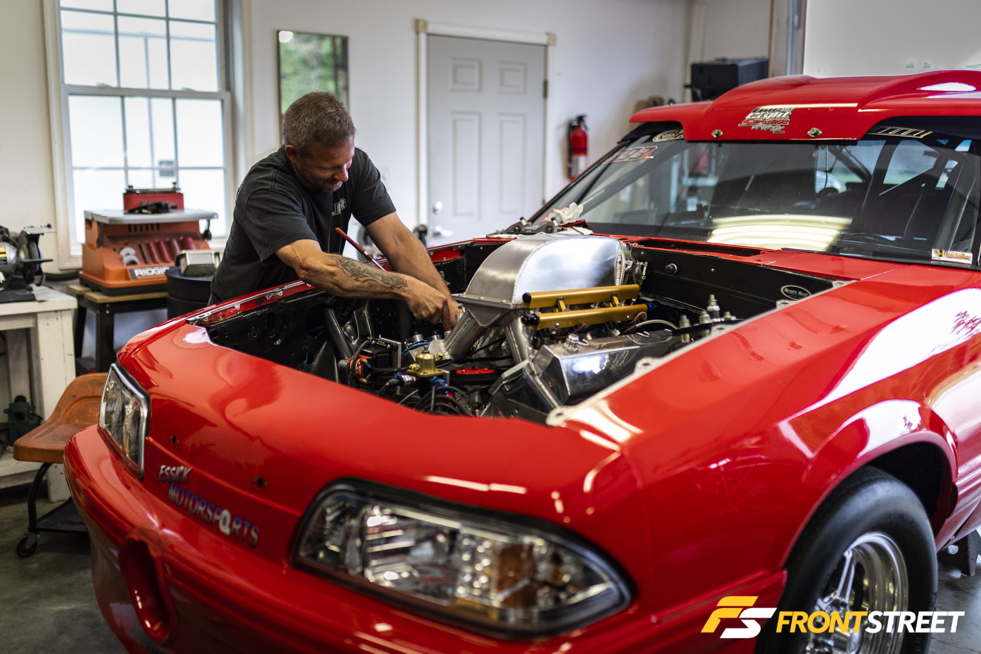 The ’86 got him accustomed to heads-up style racing, with a big dose of Fun Ford Weekend action. The car’s nitrous-injected, Brodix Neal-headed small-block combination propelled him to 8.50s in the quarter-mile, which was pretty quick for the time but left him outclassed by some of the more serious racers. A conversation with dearly-departed Jim Summers of ASSC Racing and ProCharger fame foreshadowed the combination of today, as he purchased one of the company’s F-3R superchargers and retrofitted the ’86 with that power-adder. This car was campaigned for a season-and-a-half, before he pulled the drivetrain and began the build of the 2003 Mustang which brought him to prominence in the Outlaw 10.5 world.