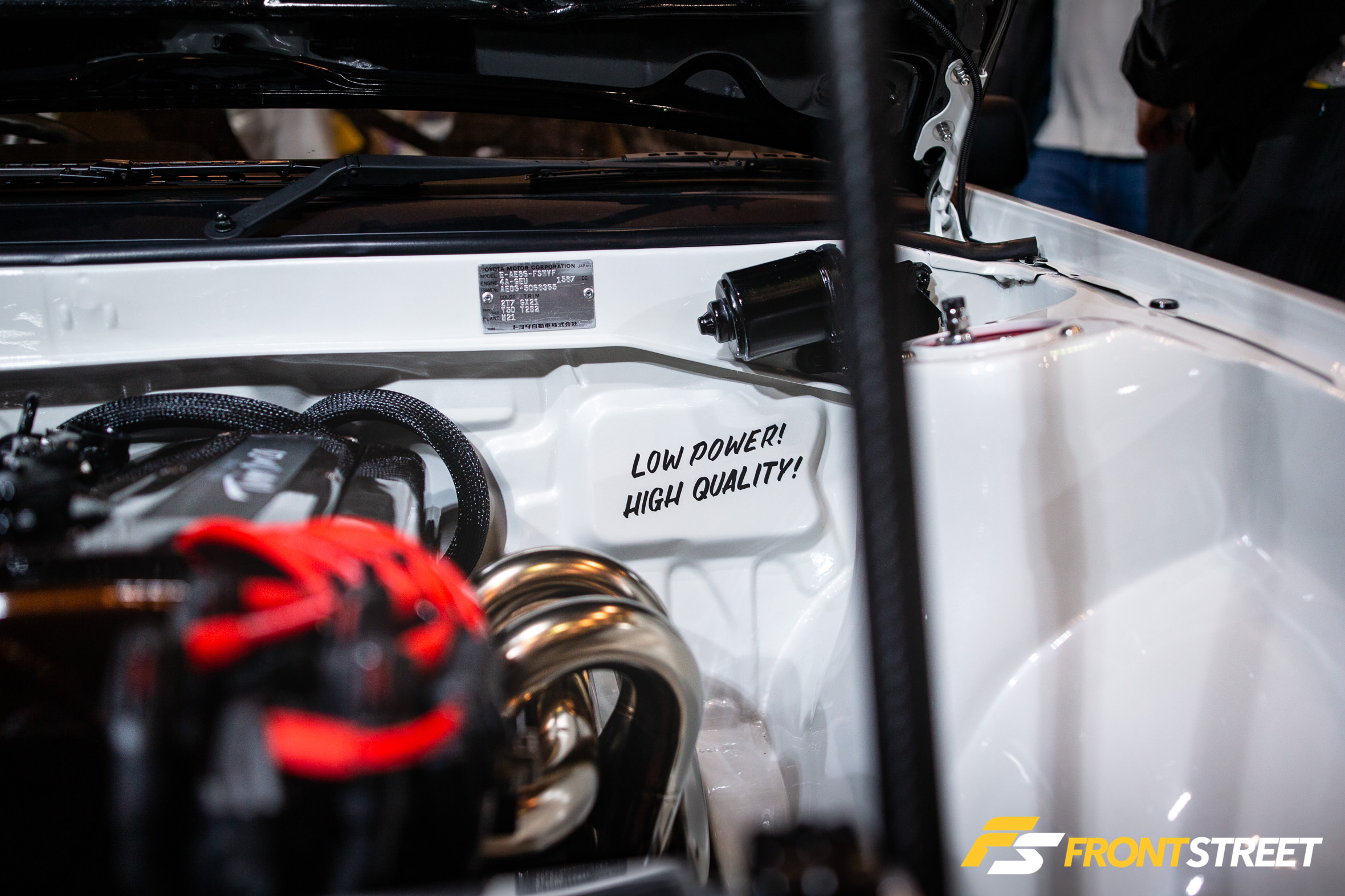 One of my personal favorites from TAS—or in recent years from the SEMA Show—are the creations made by Rohan Izawa Art Design. You’ll remember, it famously constructed one-of-a-kind automotive masterpieces. By adopting a process where bodywork specialists carve every inch of the project cars, only Rohan’s dedicated artists produce intricate designs like these. Similar to past Rohan projects, the ROHAN x EDGE SRT Hellcat was still covered nose-to-tail in an elaborate design. However, the difference this year lies in the type of paint covering its panels. A glossy, metallic, and colorful hue serves as the base for the deep, hand-crafted patterns occupying each separate panel. With wavy, flowing streaks down the door, the widened fenders host a figure closer in appearance to past projects. The company’s work never ceases to amaze, and—in a time of ever-increasing wrap designs—always proudly displays a sticker on the car’s windows stating that only paint covers the car.