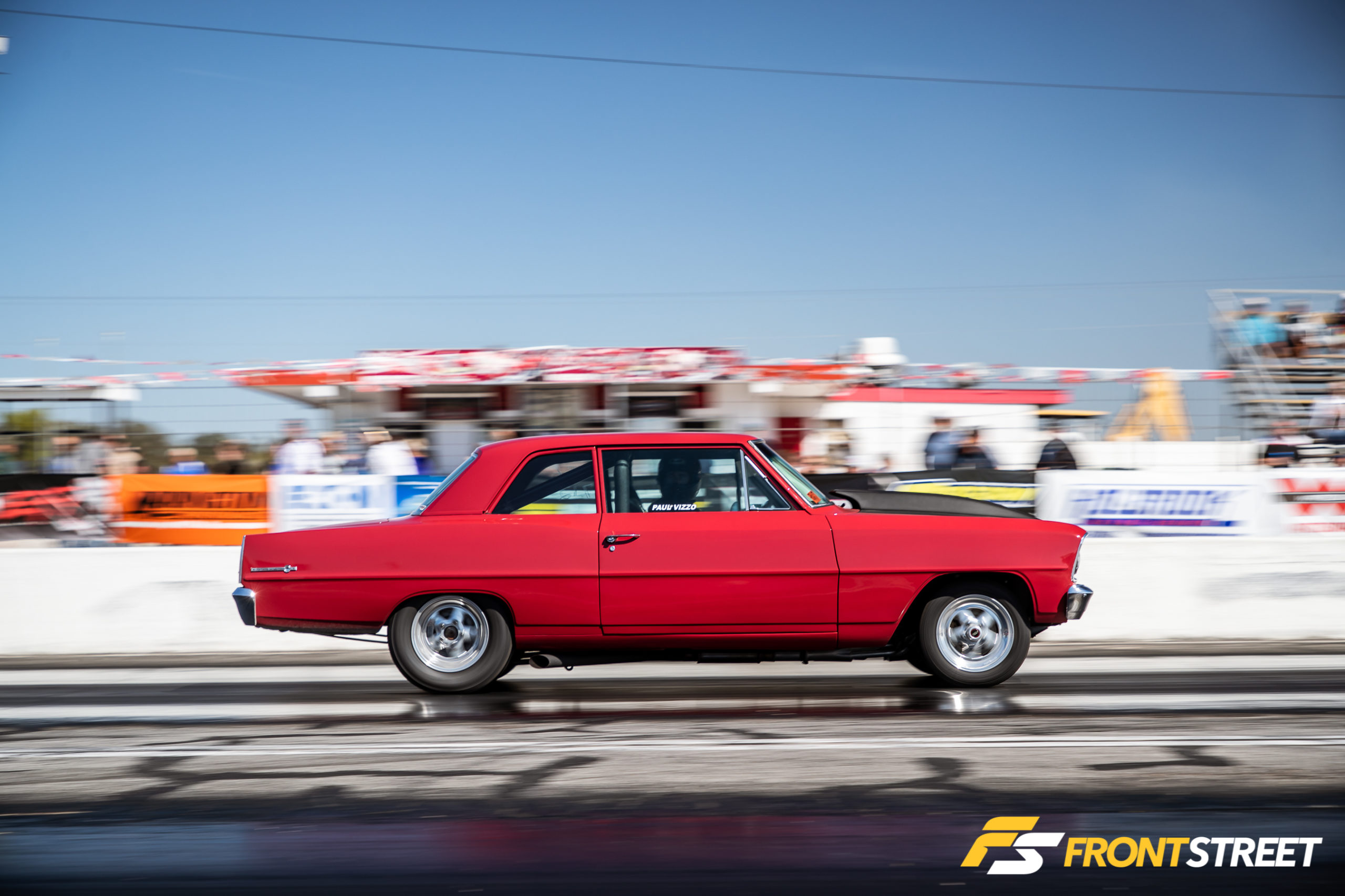 The only remaining NMCA radial class at Muscle Car Mayhem, Edelbrock Xtreme Street, was one car shy of a full 16-car field, rewarding the number one qualifier—Brian Keep’s bright red ’98 Camaro—with a bye in the first round. He didn’t waste his solo shot and blasted down the eighth-mile in 4.54-seconds, which was one of the quickest hits of the weekend. Round after round, it looked like Brian was going to be a lock into the finals. Every pass he made in eliminations was within three one-hundredths of a second. That consistency saw a repeat of his round one 4.54 pass and handed him a ticket to the Aerospace Components Winner’s Circle.