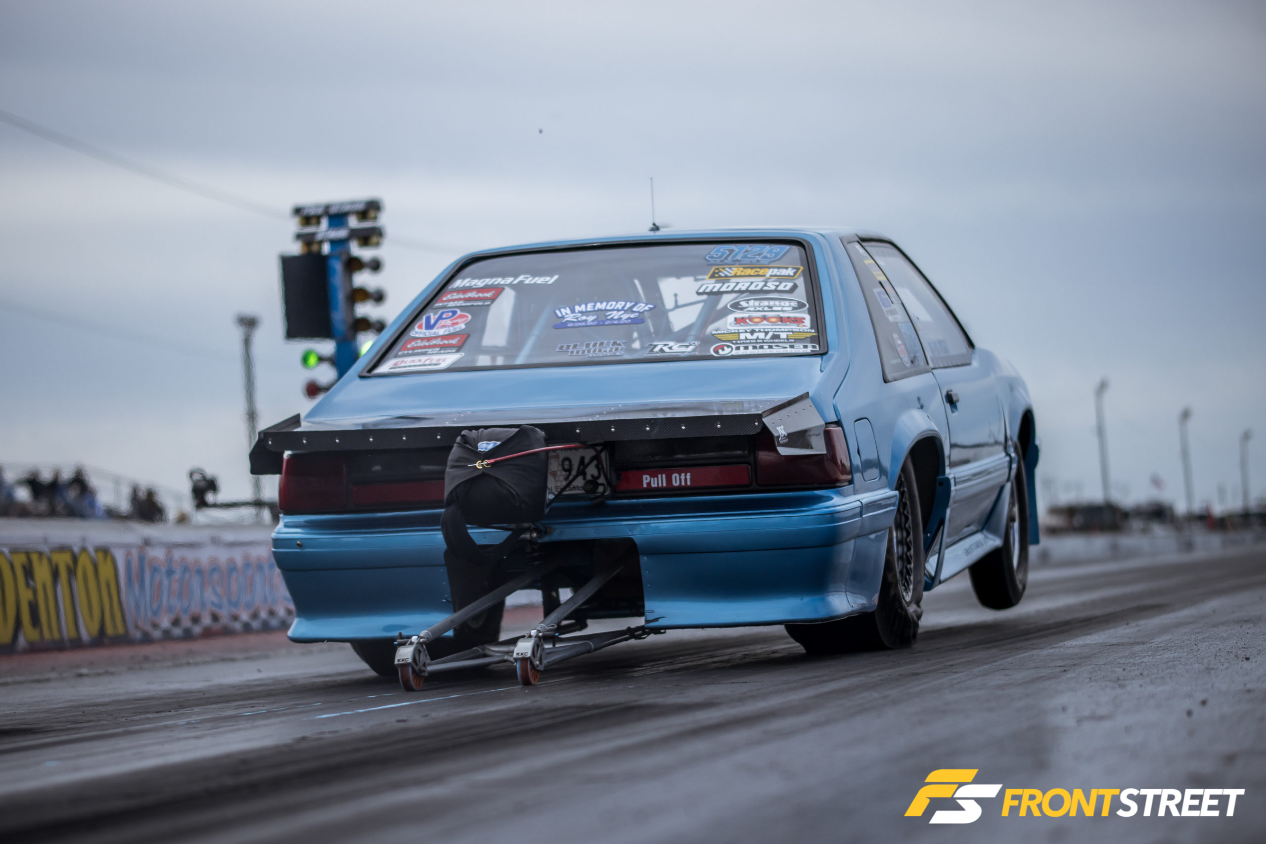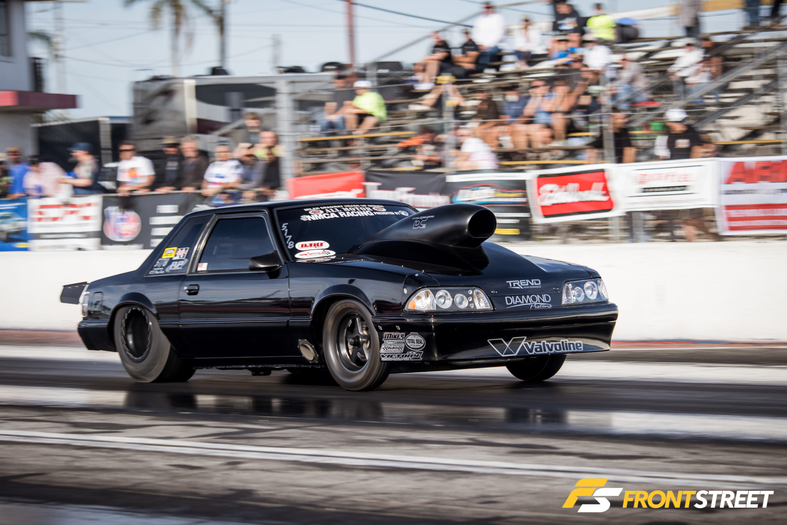 Another surprise appearance in eliminations was Jeff Rudolph’s Camaro, cut down a tire on the top end, which forced him into a foam timing block and demolished the nose of his beautiful car. But his crew—along with many others like Mark Woodruff, Craig Sullivan, their teams and a few other good samaritans—thrashed to ensure the black beauty was back on track for Q3, albeit a little less beautiful. Jeff held the top speed of the weekend, cresting 215 mph.