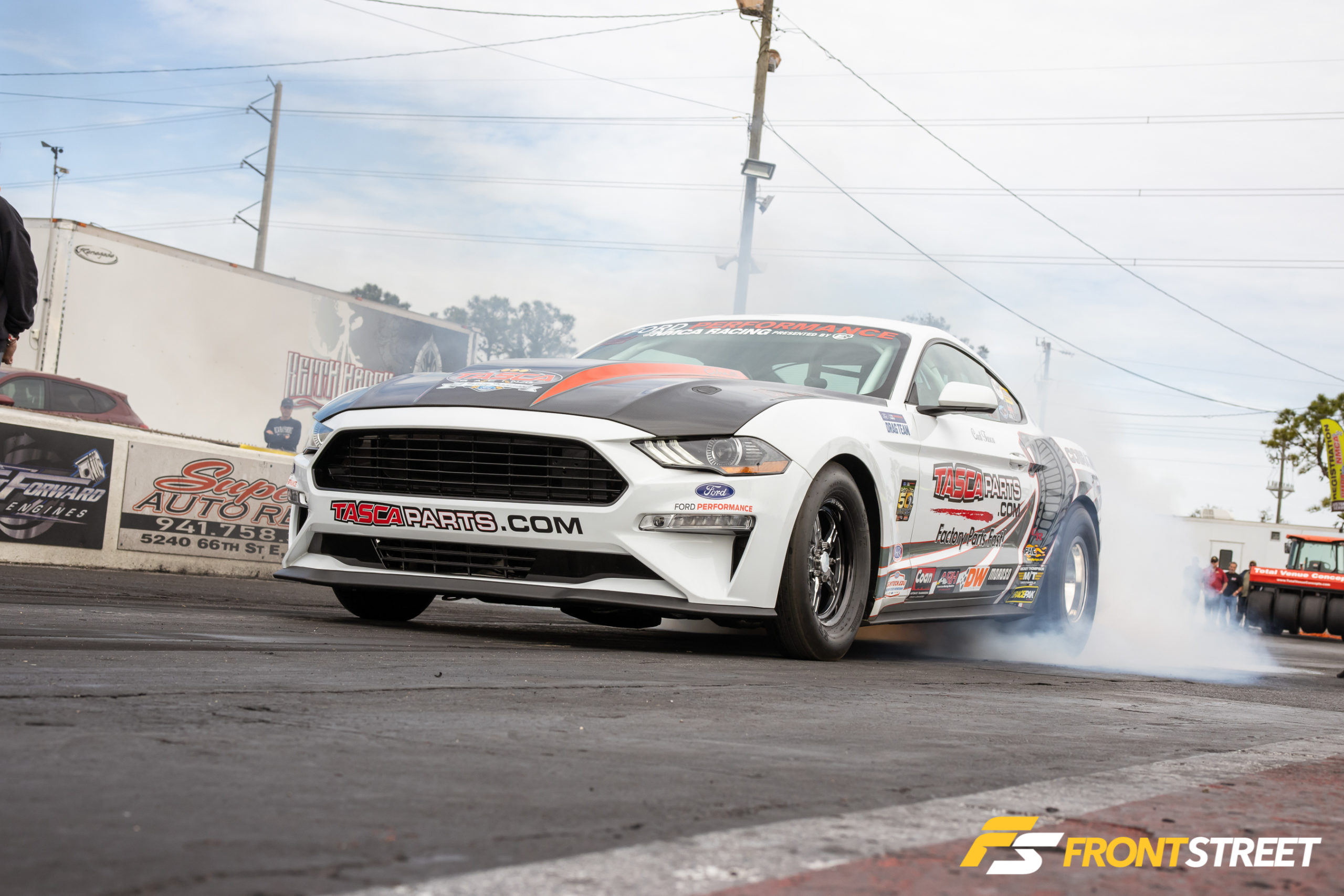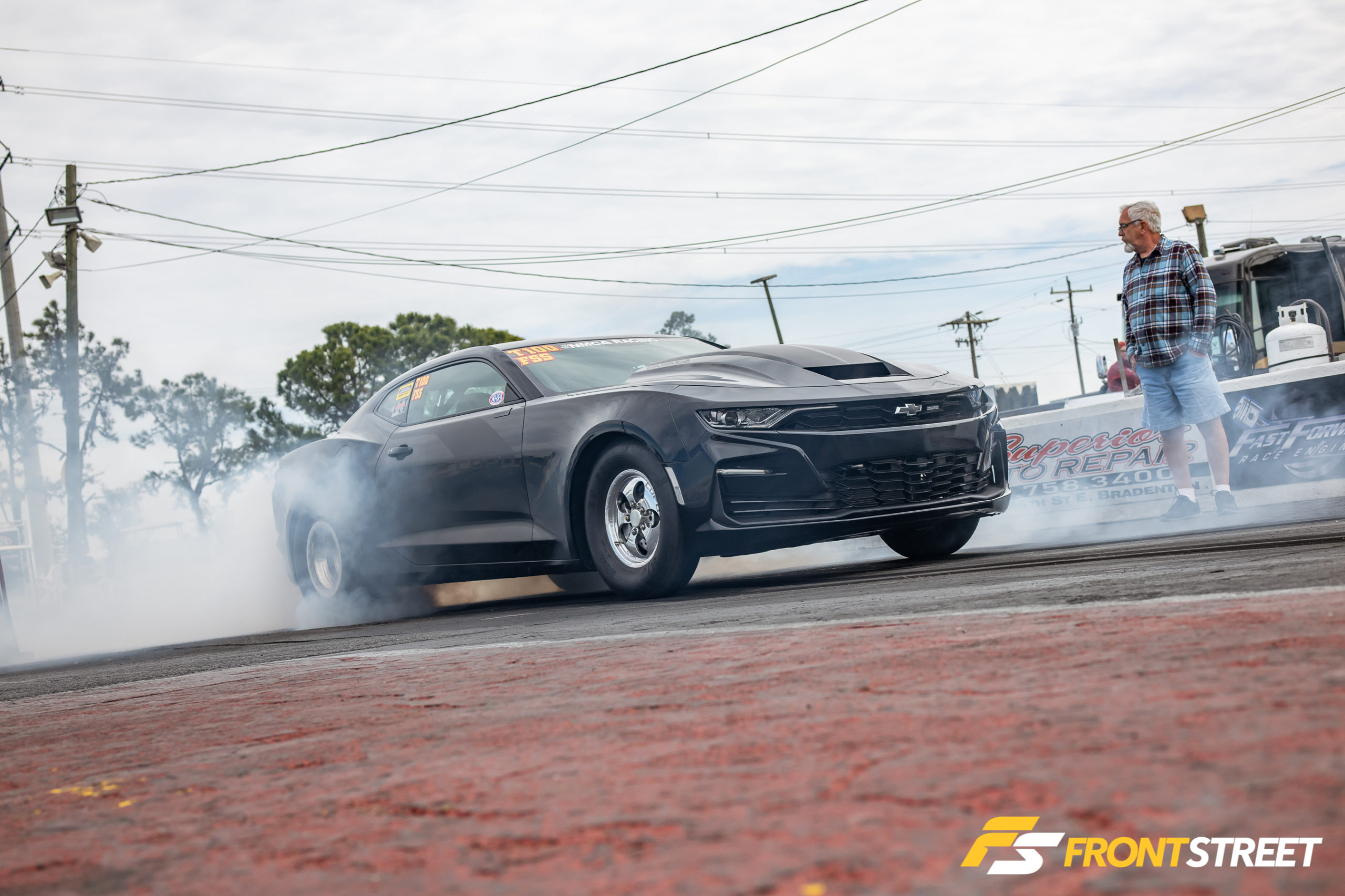 But Tom Bailey and his engine builder, Steve Morris of Steve Morris Engines have managed to assemble a Pro Mod capable of qualifying in the field, while also retaining the street-going manners to lead the 30-mile True Street cruise over the highways and byways of Florida. Bailey is best known for his multiple victories on Hot Rod Magazine’s Drag Week and 5-second capable Camaro’s performances in that arena, but this weekend he was looking to make an upset of the Pro Mod field. The car relies on SME’s revolutionary SMX engine, which is a 4,500-horsepower-capable twin-turbocharged billet engine that incorporates water jackets into its architecture to ensure the engine stays cool on the torture test that is Drag Week. Bailey’s ride was certainly in the ballpark of being competitive—astonishing in its own right—but he was unable to shake a few mechanical bugs that prevented him from leaving the line in round one.