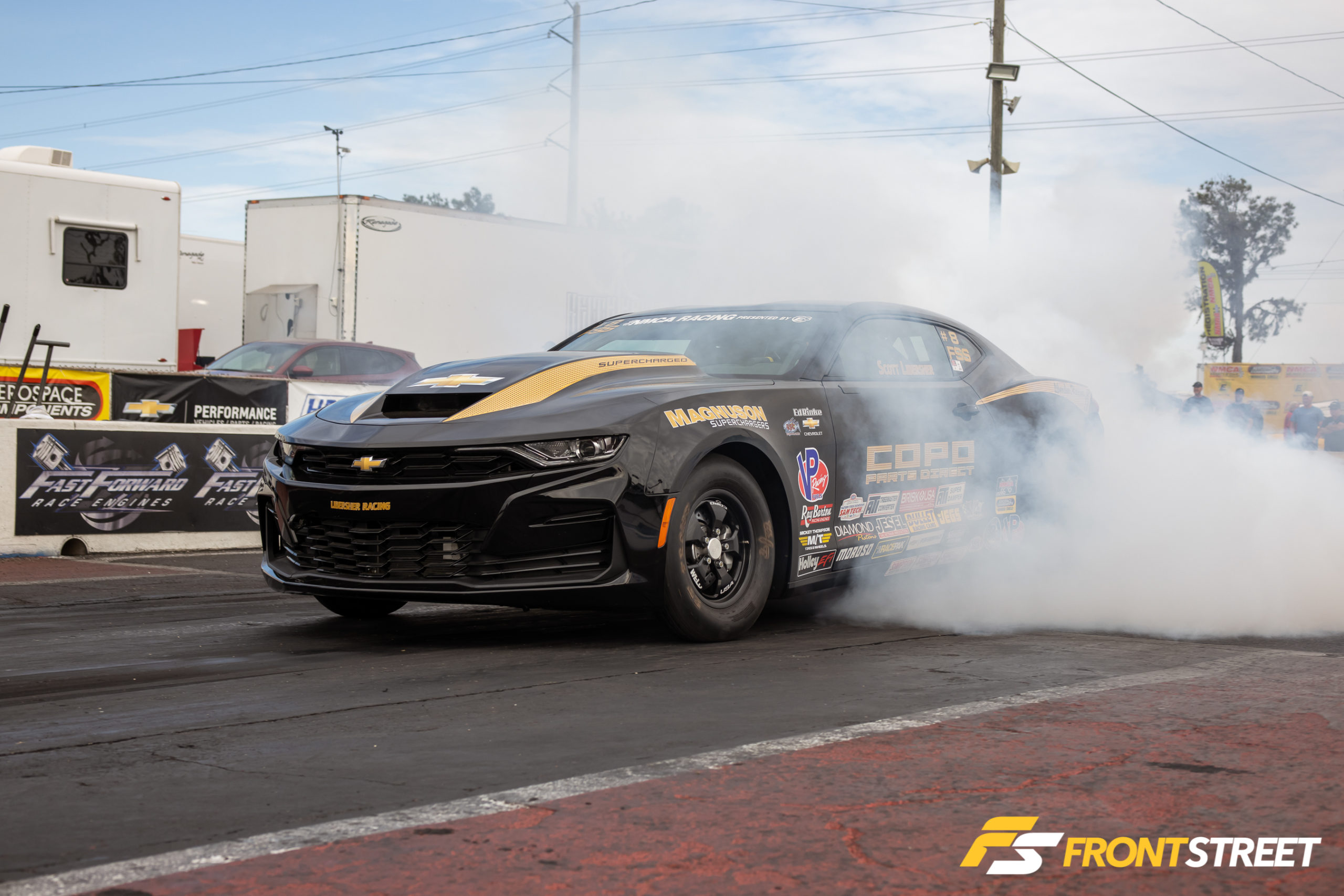 Something is in the water over at the Ford Performance camp, as the Cobra Jets were dishing out some seriously quick and record-breaking numbers. This time last year we were talking about the potential of an illustrious group of drivers getting into the 7-second club in Holley EFI Factory Super Car. This year, twelve out of the seventeen cars that qualified did so with a 7-second pass. Nobody could touch Chris Holbrook and Tripp “The Chicken Man” Carter with their 7.660 and 7.696 qualifying runs, respectively. It seemed like pass after pass new records were set in a Ford during Factory Super Car competition. By contrast, Danny Condon had the quickest COPO Camaro of the weekend and only managed a 7.808 elapsed time.