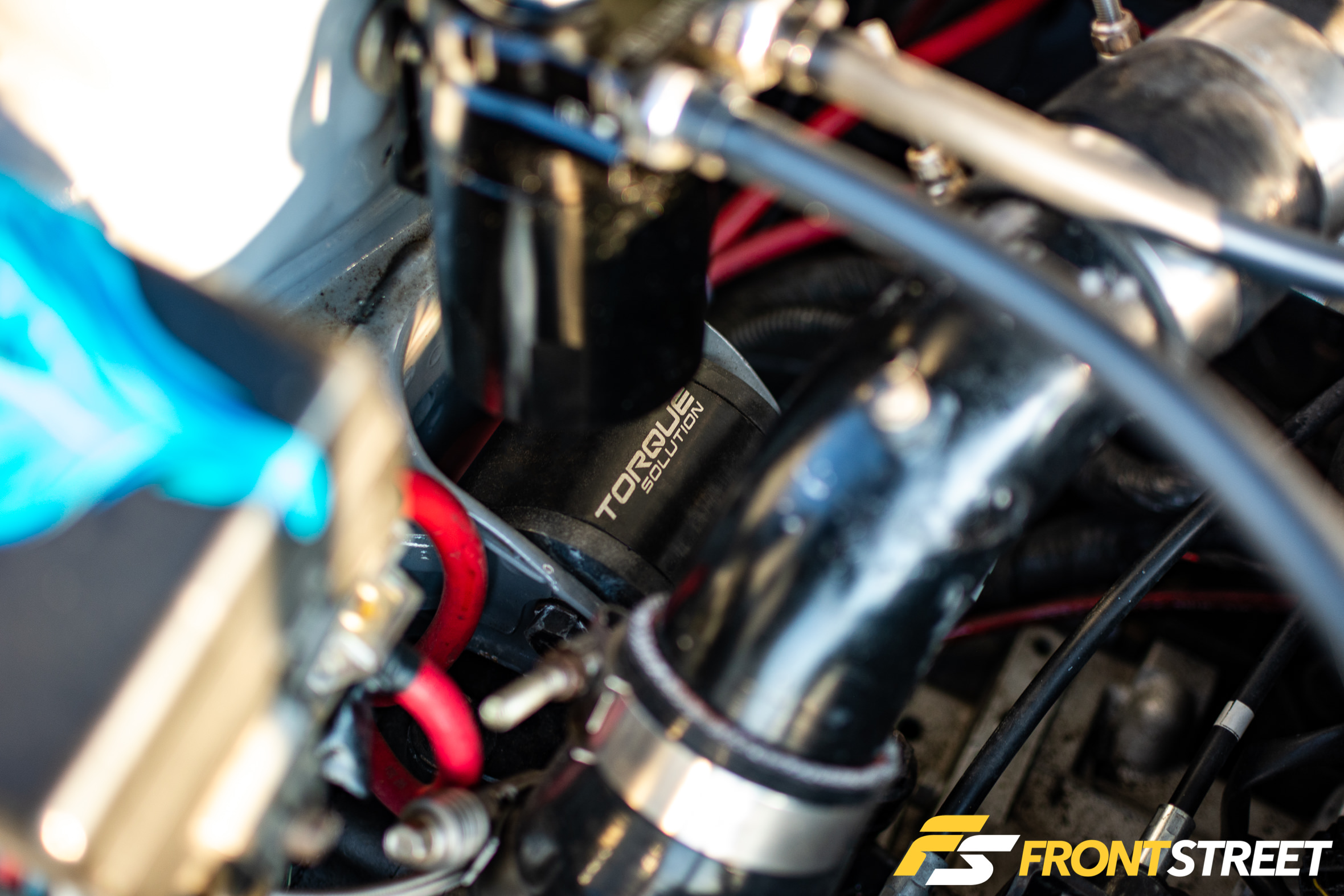 One of the essential parts carried over from the old build was the motor setup, which was built, installed, and running before the accident. The car’s 4G63 engine was completely dismantled and then assembled in a friend’s clean build room using all brand-new or aftermarket parts, including Brian Crower rods, Wiseco pistons, FP2 camshafts, and ACL bearings. The finishing touches on the engine are an FP 71HTA turbocharger, HKS cam gears, and a JM Fabrications manifold. The power made by those parts is sent through a built transmission with a Lancer Evolution first gear and Vicious Garage LSD in the rear. The complete engine, along with its wiring harness, was plucked from the totaled chassis and routed to tie in with the new shell.