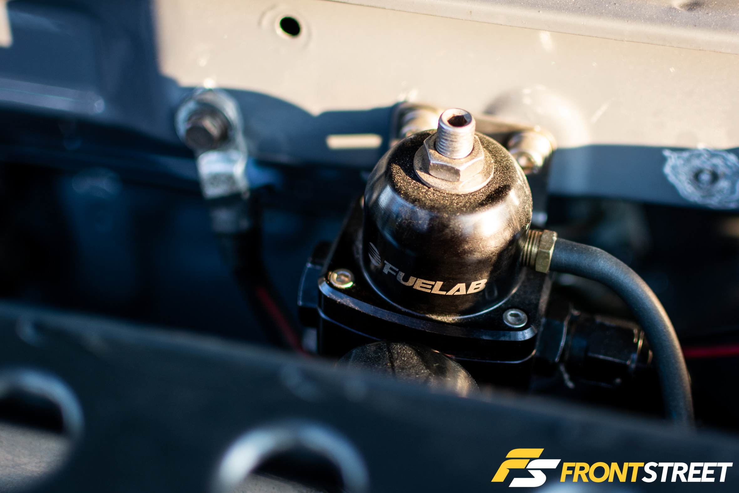 A Baer big brake kit from the old project received new stainless steel braided brake lines before its placement into the new chassis. Volk Metal Craft bushings, Megan Racing control arms, and a Bulfab tubular crossmember add rigidity to the suspension.