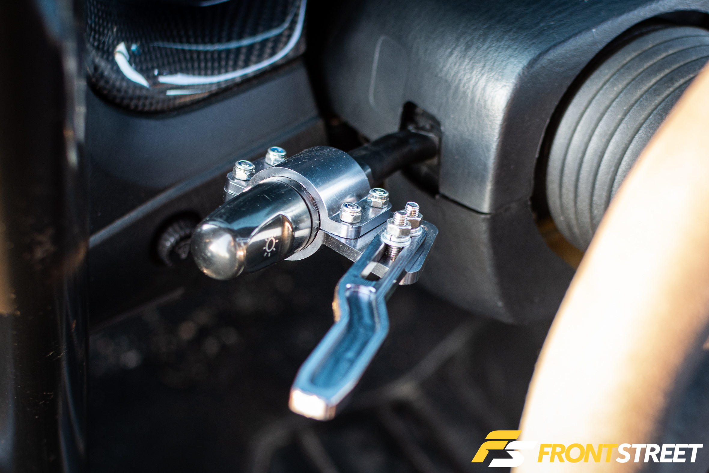 He transferred the Corbeau seats and harnesses over from the old car, along with the dashboard—complete with a hole from his knee that occurred during the accident. He upgraded the remainder of the interior with new goods, including an Autopower roll cage, Renown x Speedhunters steering wheel, Carbonetics airbag delete, AEM Performance Electronics gauges, and a Billetworkz Formative shift knob.