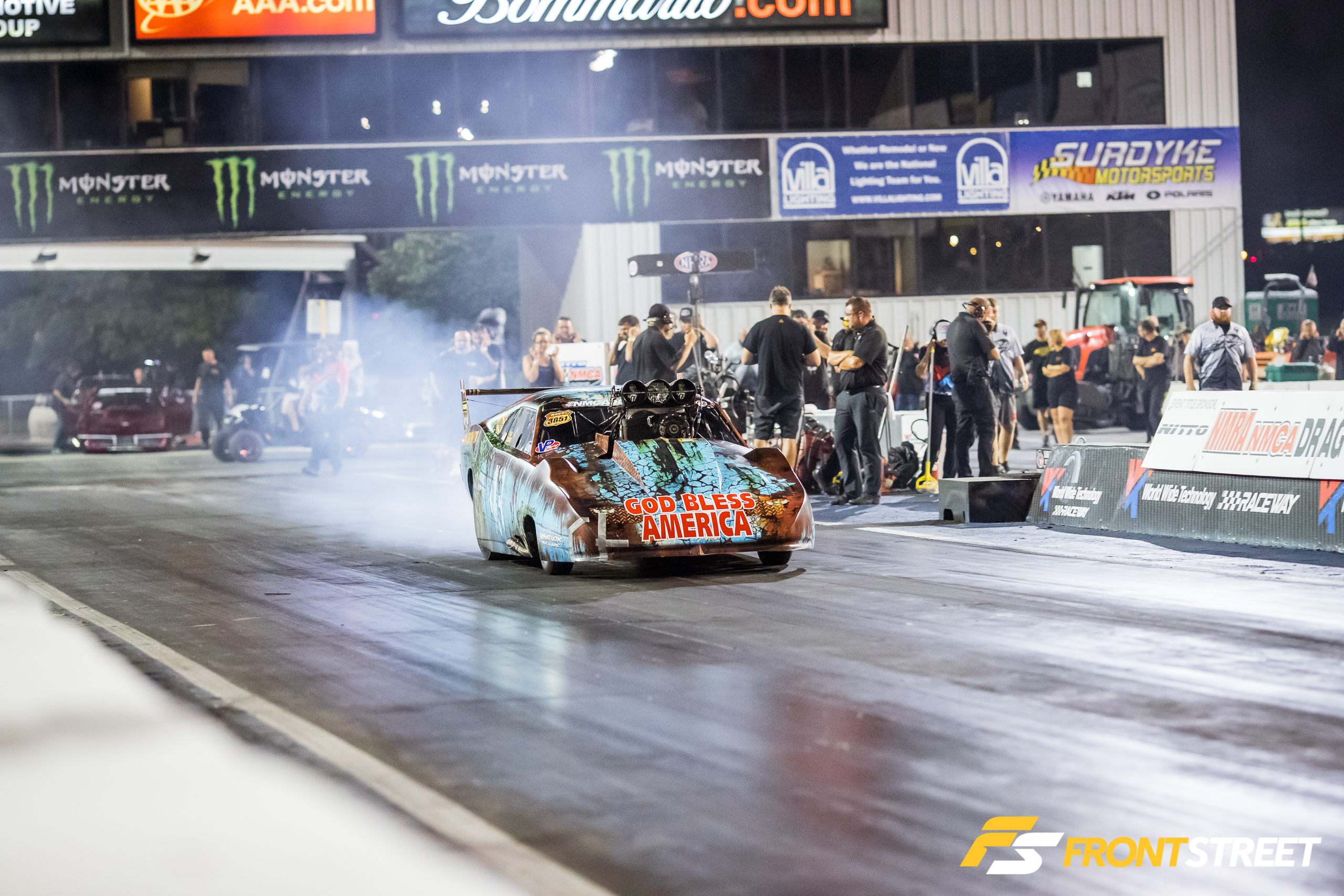 After the second consecutive day of a rain cancellation at the NMRA/NMCA Super Bowl of Street Legal Drag Racing, I reached out to my editor here at Front Street and informed him of the bleak outlook for the weekend. The event started with a few hiccups, as Thursday’s test session was washed out. Friday had a more promising start, with several classes being able to get their cars down the track before the skies opened back up. The difficult decision was made to scrap the second day in a row. Saturday’s forecast didn’t look much better; this wasn’t a typical event as both series hold their separate events alongside one another, then the victors of each class battle in a head-to-head matchup for ultimate bragging rights and a shiny Super Bowl Champion ring. Any further delays introduced by Mother Nature would only stand to jeopardize the likeliness of seeing the event be completed. Many of the racers expressed their doubts with me. In contrast, others conceded that, “If anyone was going to get us down the track, it was ProMedia,” a reputation the promotion company has earned over the years for pulling off tremendous turnarounds in some incredibly adverse conditions.