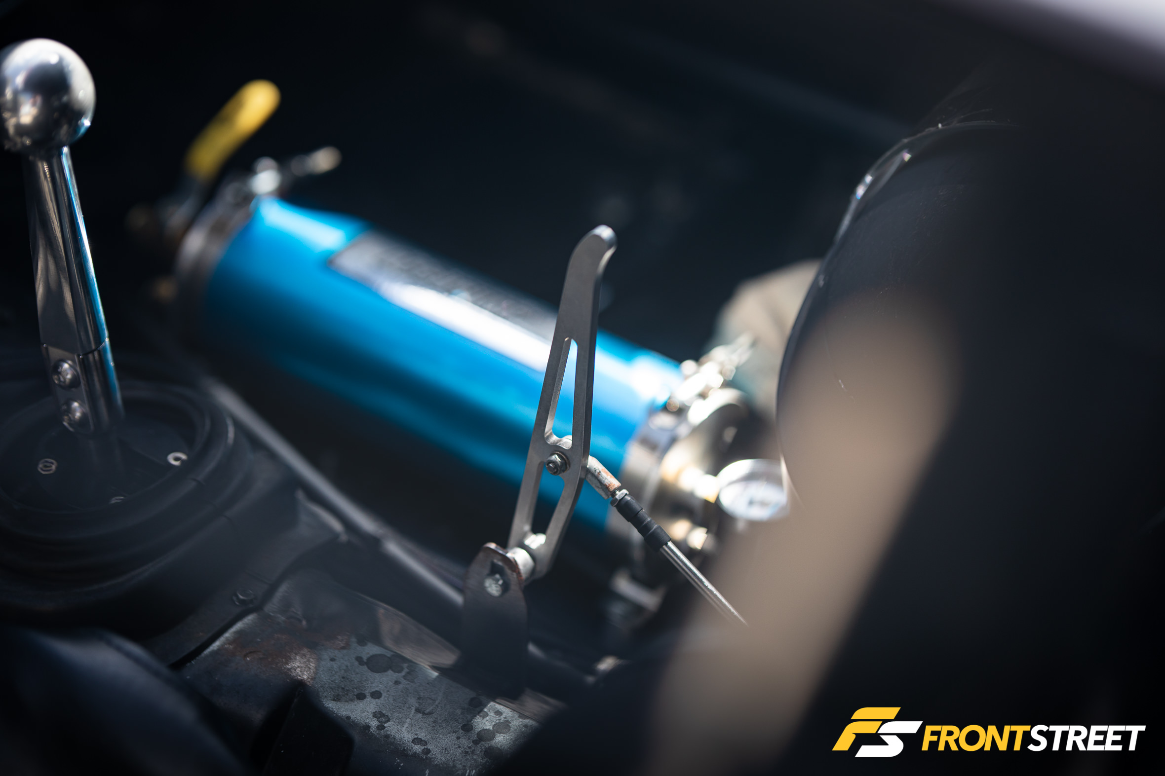 Peering inside, the average weekend warrior would smirk at the simplicity of the interior. True gearheads like myself see what needs to be there, from the cage and safety gear to the Holley digital dash and Kirkey Racing seat. My favorite piece inside is the trick shifter made in-house at Tick Performance that Jonathan uses.
