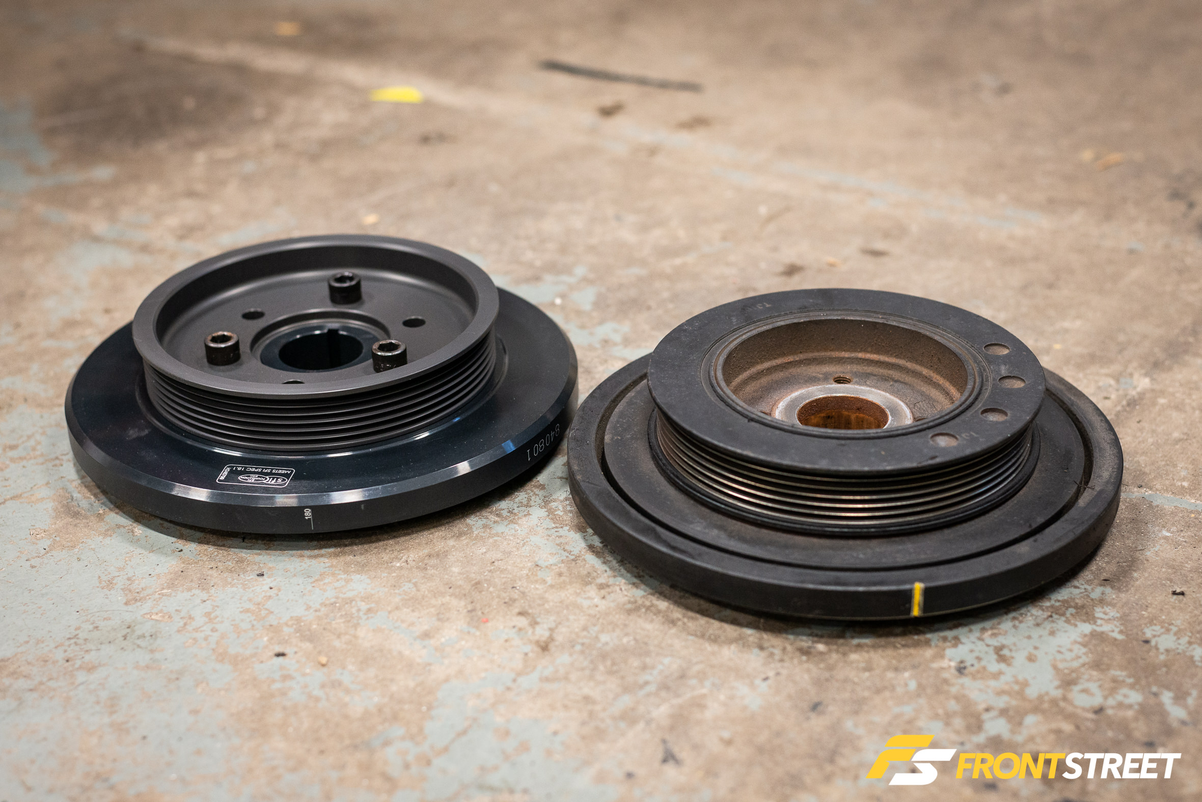 Keen followers of Front Street will remember our take on the commonly overlooked act of brake upgrades. We explained how they’re usually not high on people’s modification wish list because their perceived benefits aren’t as visual as a set of wheels. However, you can only drive your car once without properly functioning brakes, so equipping your vehicle with an arrangement fit to handle increased speeds is extremely important. Well, I’m here today to tell you about another similarly necessary upgrade whenever you increase RPMs, add horsepower, or engine torque — that’s the harmonic balancer.