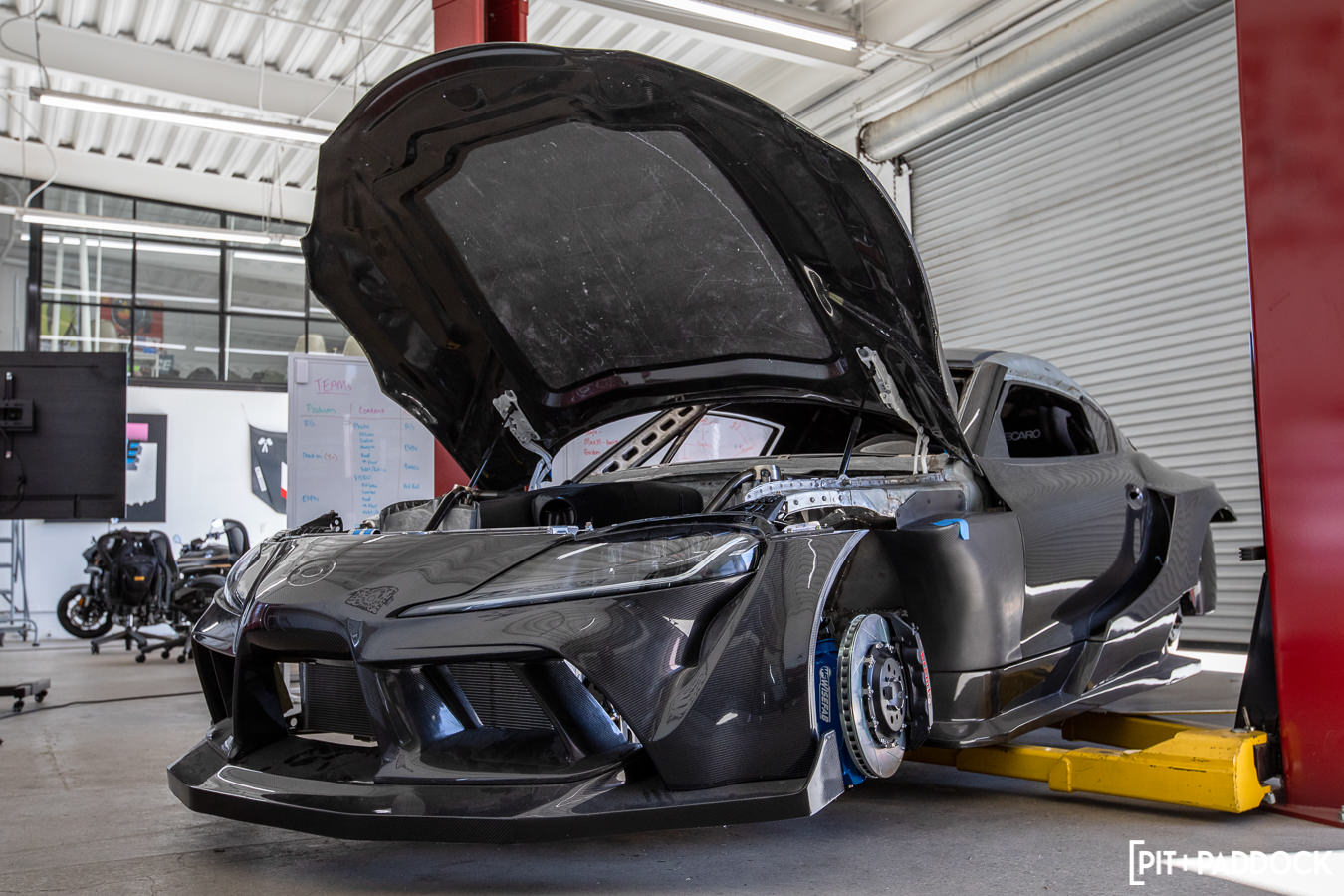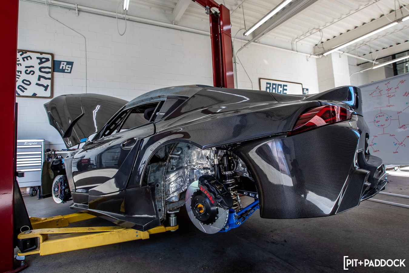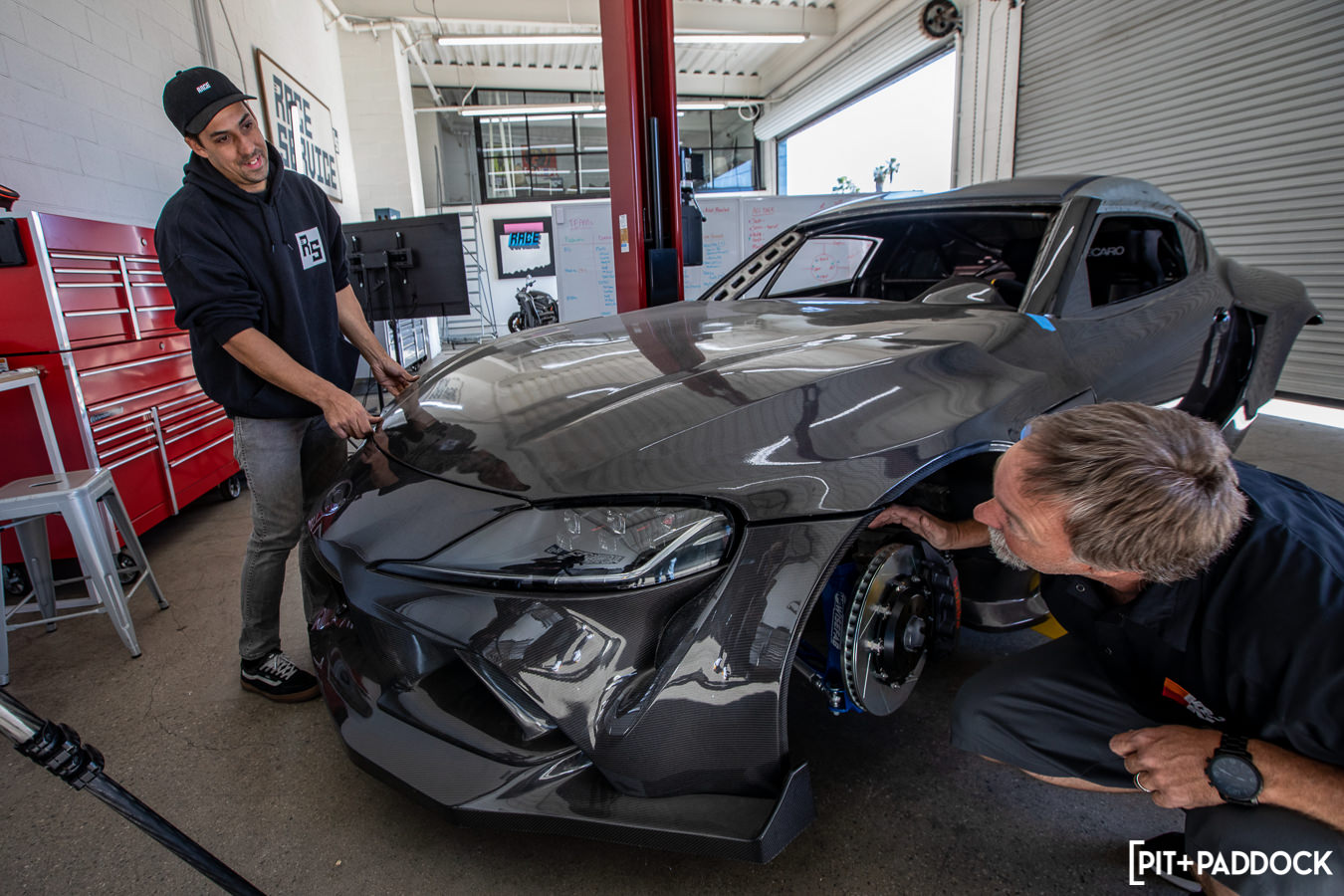 Ryan’s been documenting the entire build on his YouTube channel, which I highly recommend taking some time out of your day to watch (he also drops a new episode every Sunday). There’s an unexplainable number of manhours into the build, so it’s quite inspiring and enlightening to follow along with all the steps and details for something as extreme as this. As a Supra owner and fanboy myself, I’ve been curious about the project since Tuerck announced the #FormulaSupra six months ago. As you can imagine, I was pretty stoked when Chris Matye, brand manager of AEM Intakes, invited me to Race Service, where I was able to snap some photos and get a glimpse at one of the A90’s latest upgrades, a one-off carbon intake.