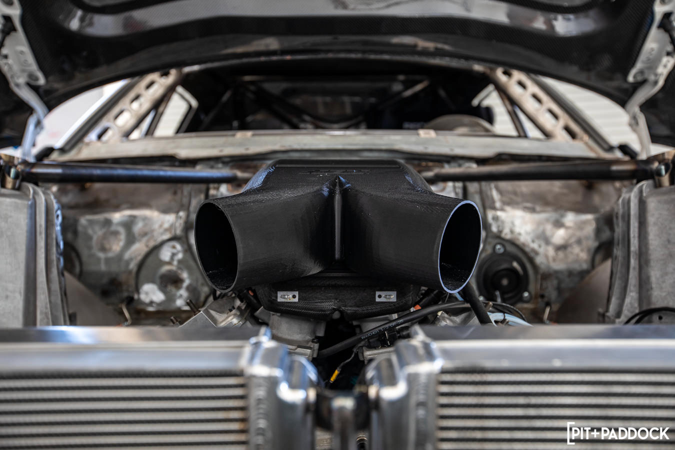 With Tuerck and the Race Service team breaking the internet with the GT4586, the pressure was on to build something even crazier next time around. When the A90 was finally announced as a production reality, there was a lot of talk about who was going to have the first 2JZ-swapped A90. Tuerck and Race Service had to do something different, a JZ-powered A90 wasn’t going to be unique. An LFA V10 was considered, but it turns out an ex-Formula One Judd V10 is actually easier to get your hands on than a spare LFA engine. As soon as Ryan ordered the Judd, I got a text asking if I’d be able to make a custom carbon intake and filter setup. AEM was instantly on board; we just weren’t sure exactly how we were going to do it yet.