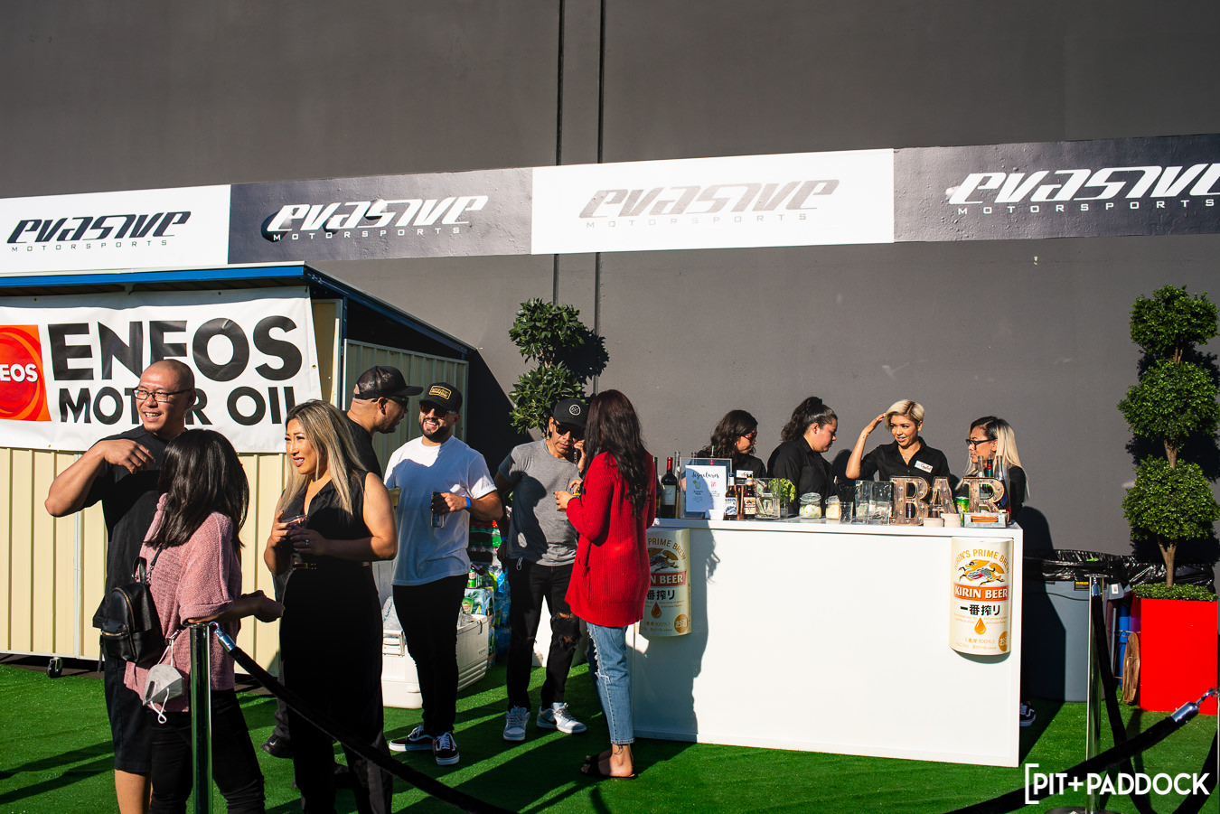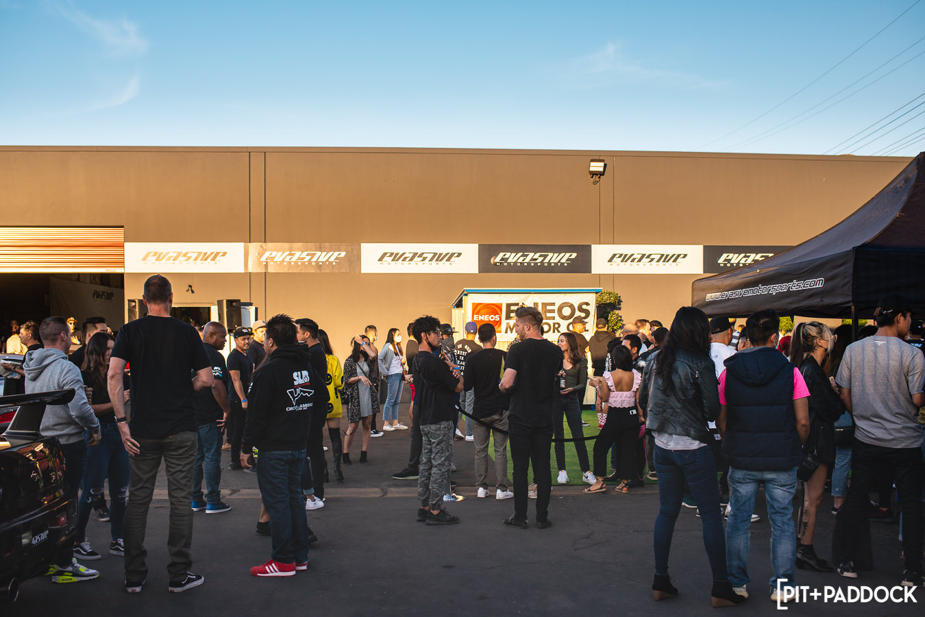 As guests made their way through the green grass-walled entrance installed for the day, they ran into many industry friends and guests on hand, which included the folks at ENEOS, Toyo Tires (thanks for bringing the Toyo girls and the rig out!), KW Suspension, CSF and more. There was also no shortage of auto influencers, either, with Dustin Williams, Emelia Hartford, RJ DeVera, Sara Choi, Ken Gushi, and more in the house. It honestly felt like a SEMA party more than an open house, and that is truly what made it feel special for Pit+Paddock and Evasive Motorsports to bring the community together.