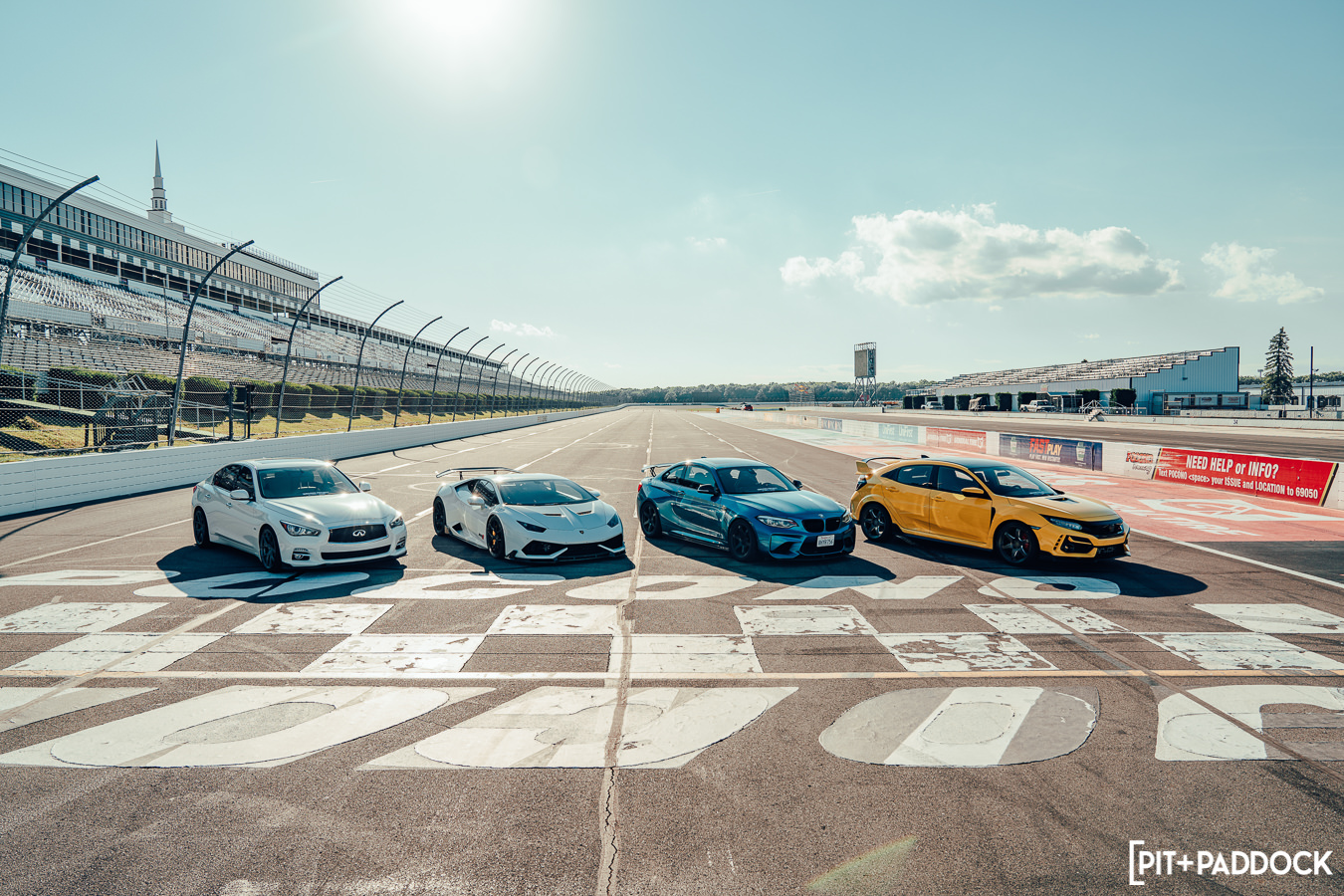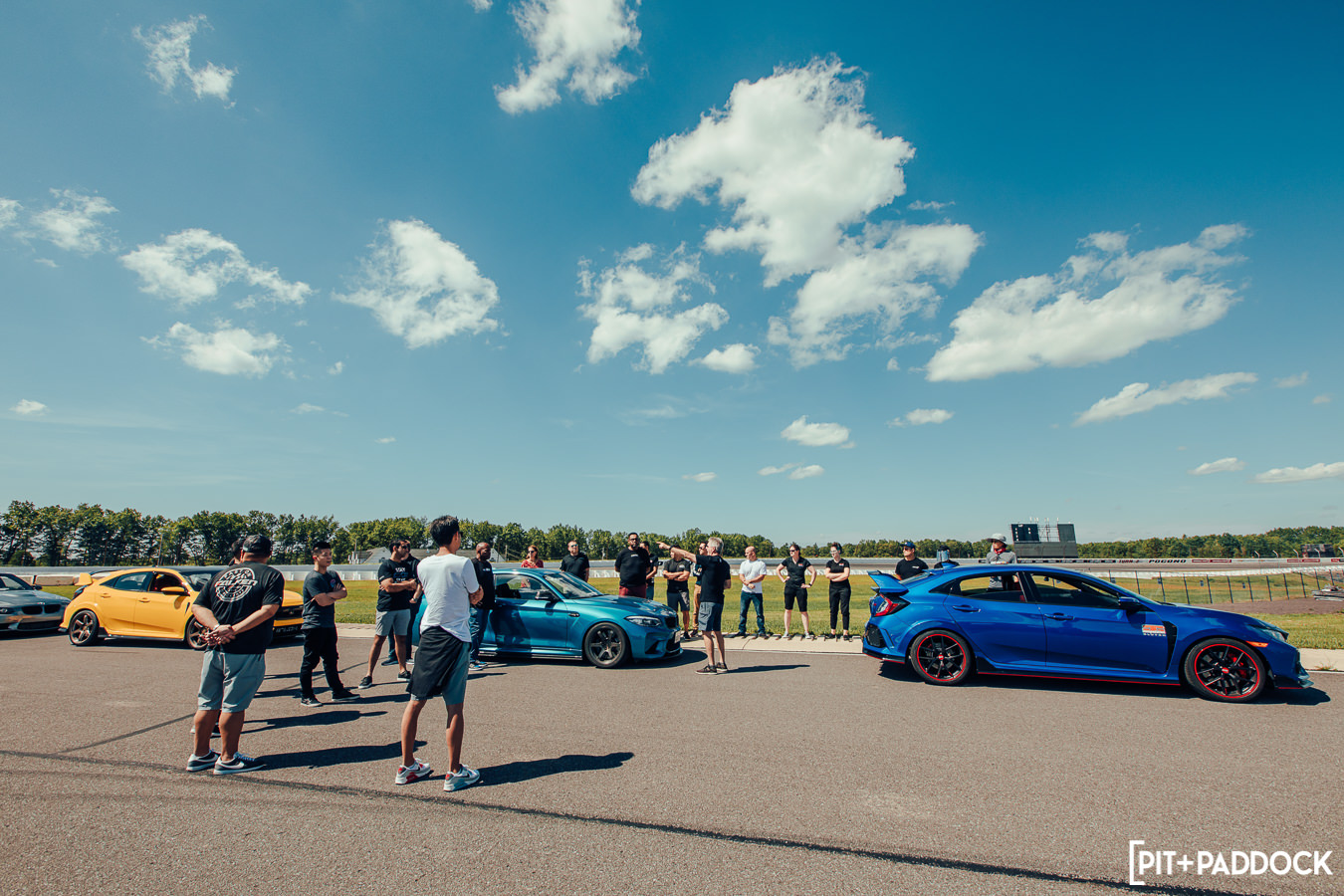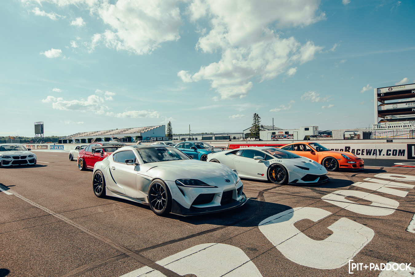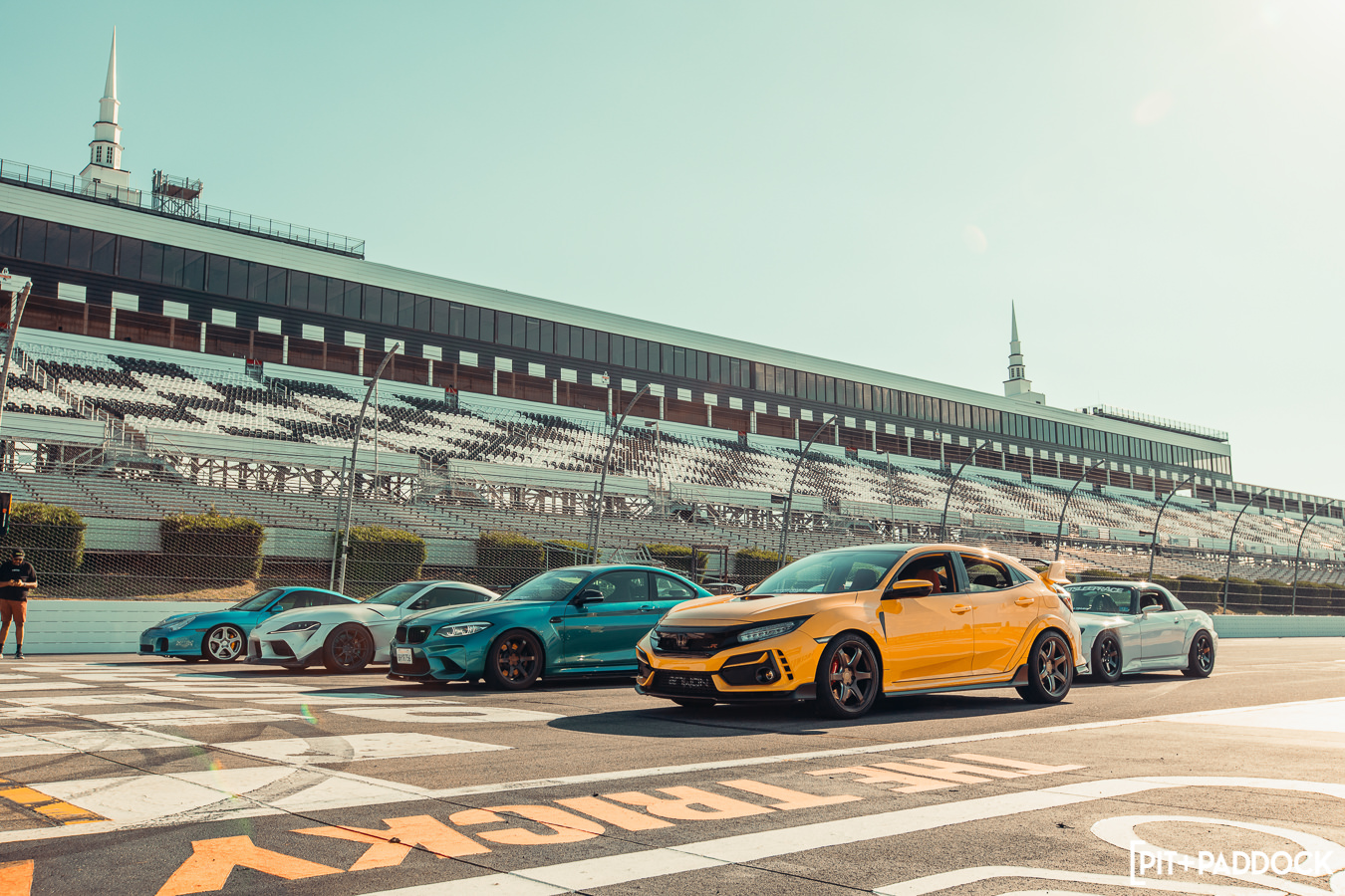 The last hour of the day concluded with group photos on the start/finish line, which looked absolutely epic as we were able to park cars five-wide and with the main grandstands in the background.