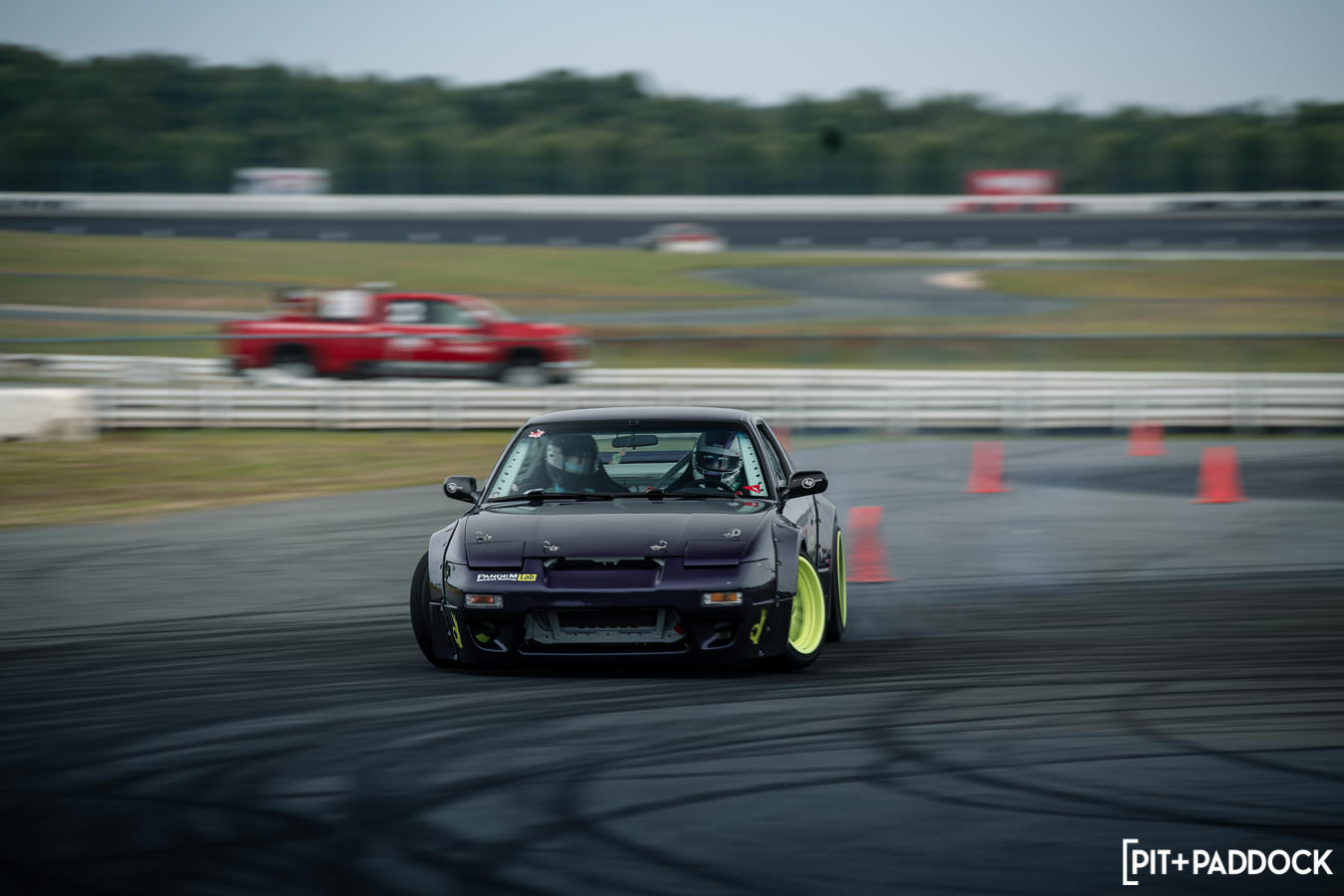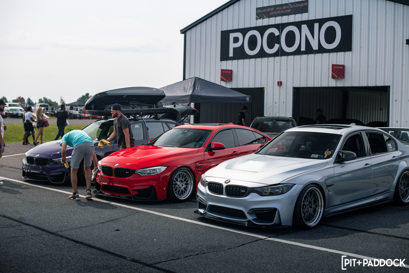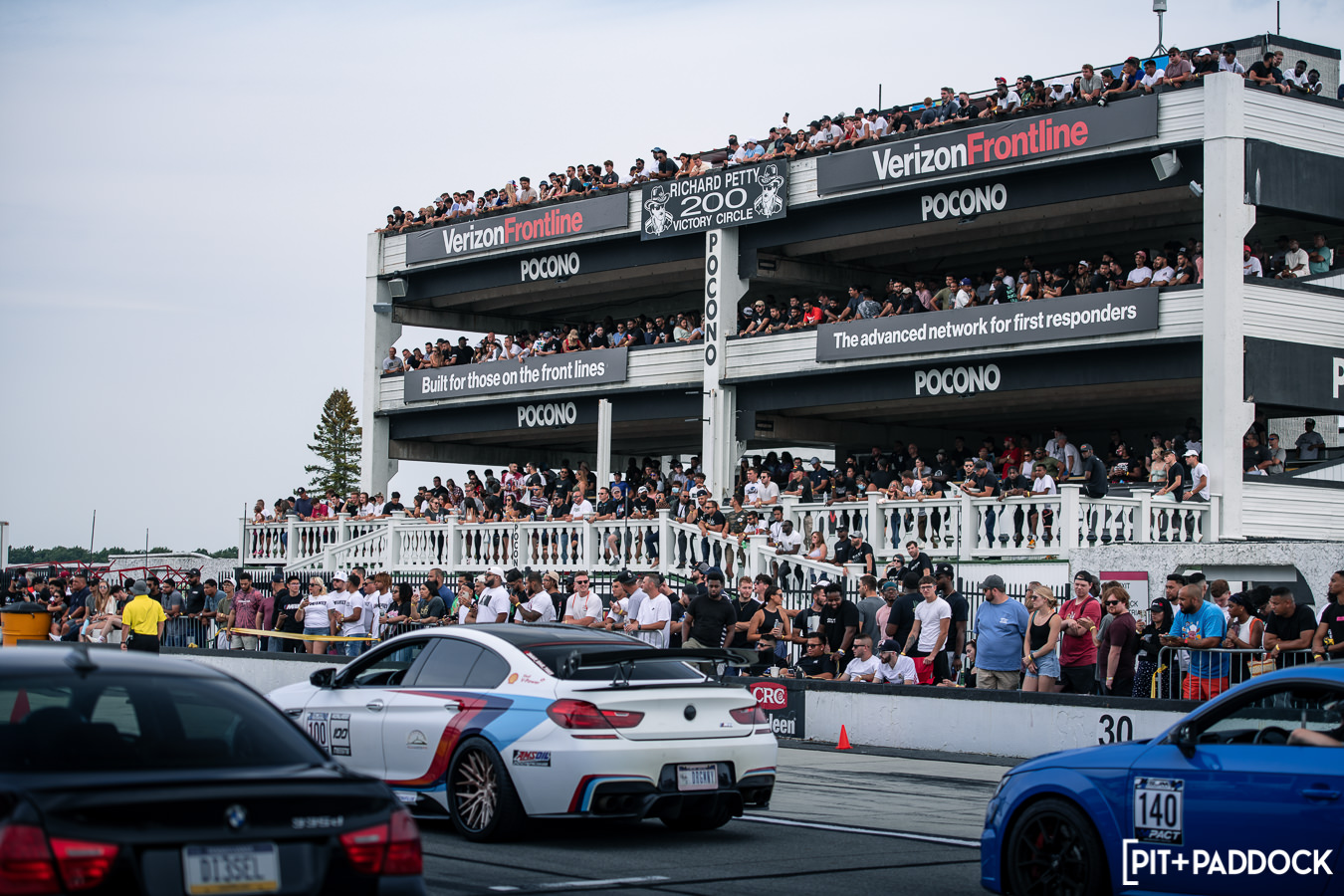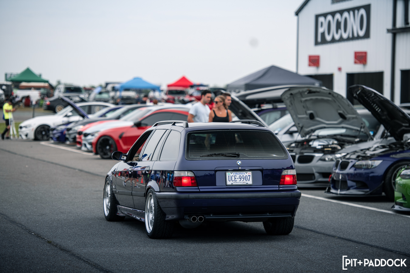 Like previous years, before any of the vendors were even finished getting set up, rows of cars quickly formed alongside the paddock area in preparation for roll racing. Taking full advantage of the dry weather and slightly cooler Pocono mountain temperatures, the track was busy all day with fans lining the pit lane to watch cars go head-to-head at speeds in excess of 170mph! At the same time, the guys participating in the NASA HPDE event and 14-year old drifter, Rhys Conklin, were enjoying the dry conditions as well. This year Rhys and his dad offered ridealongs to fans on the skidpad — Rhys in his LS-swapped #FunHaver E36 sedan and his dad in his LS-swapped Pandem/Rocket Bunny Nissan S13.