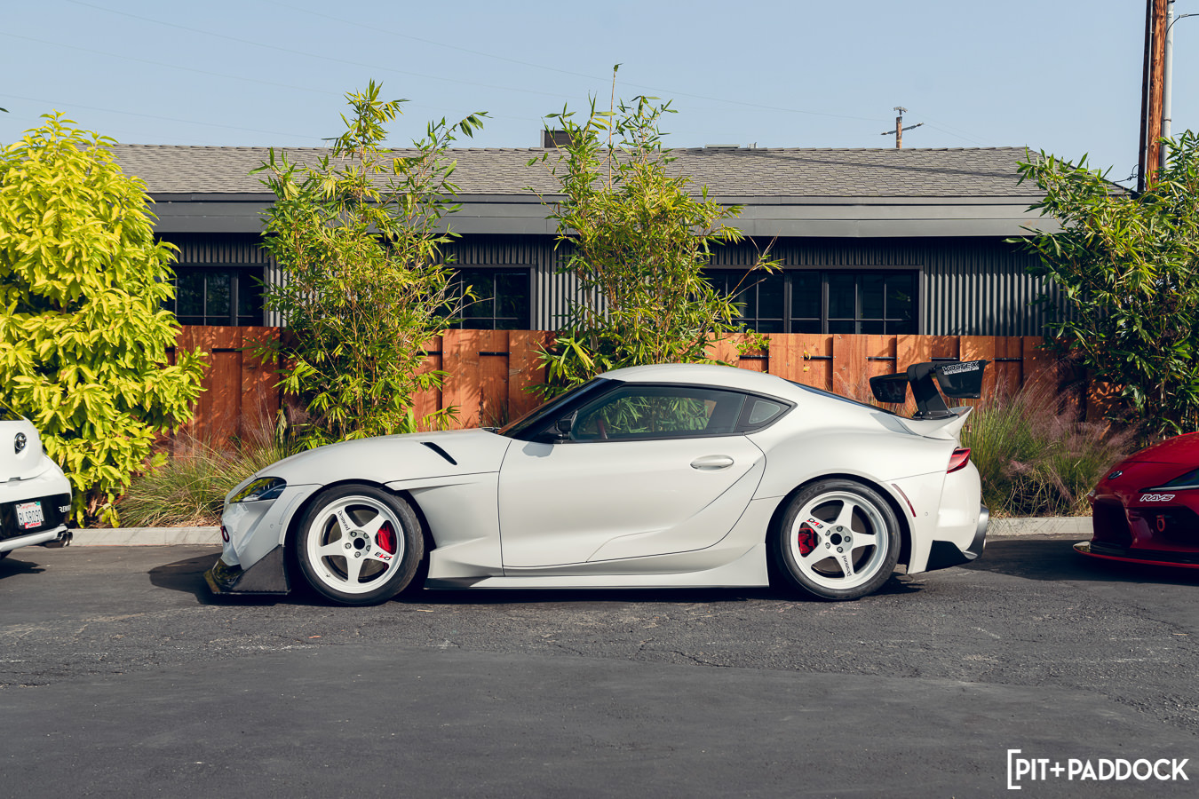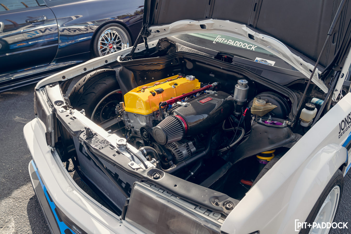 Outside is where all the magic was happening, though, as hundreds of people gathered to check out our curated collection of SEMA vehicles. Three Pit+Paddock booth cars were on-hand, including Riley Stair’s 1970 Pontiac Trans Am, Rywire’s EV-swapped Honda S2000, and Dai Yoshihara’s F22C-powered Mercedes 190E. In addition, we showcased Top Rank’s NISMO 400R, Mastermind/Tec-Arts immaculate AE86, the CSF 911, Leen Customs‘ Hakosuka sedan, Peter Chrisikopoulous‘ S13 drift car, and the one and only GR Yaris on American soil. If that wasn’t enough, other heavy hitters like Mike Burroughs of Stanceworks’ Ford Model A and Scott Birdsall’s famous “Smokey” diesel truck made guest appearances.