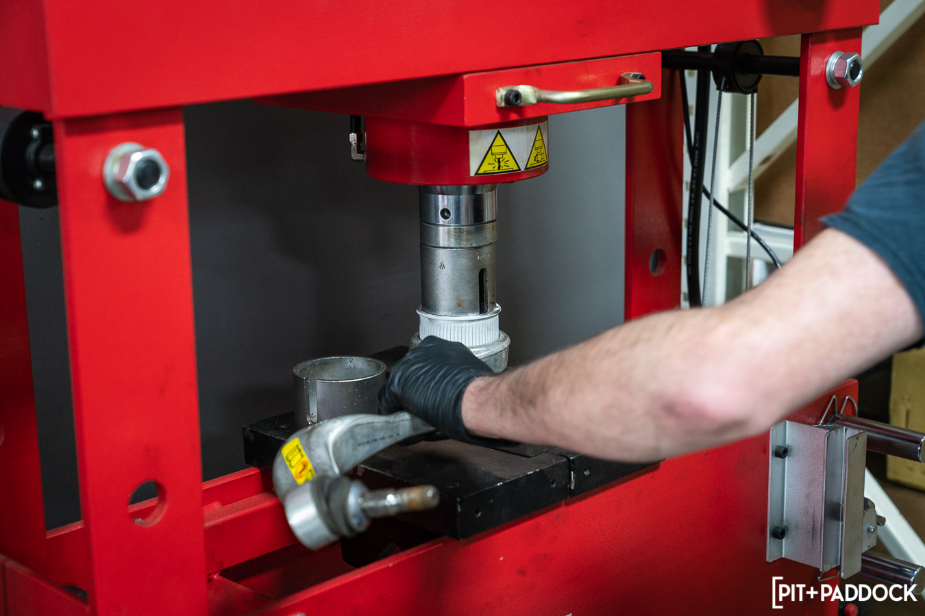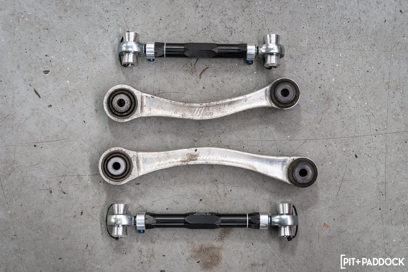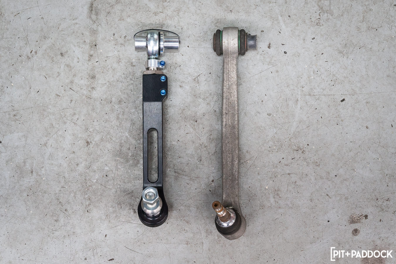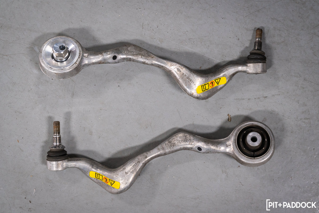 One of the arms that required further provisions was the front caster rod monoball bushing. A modification whose install steps we similarly covered in our F80 M3 suspension article. The stock bushing will need to be pressed out of the arm, and its enhanced spherical bearing will be pressed into place in the same component.