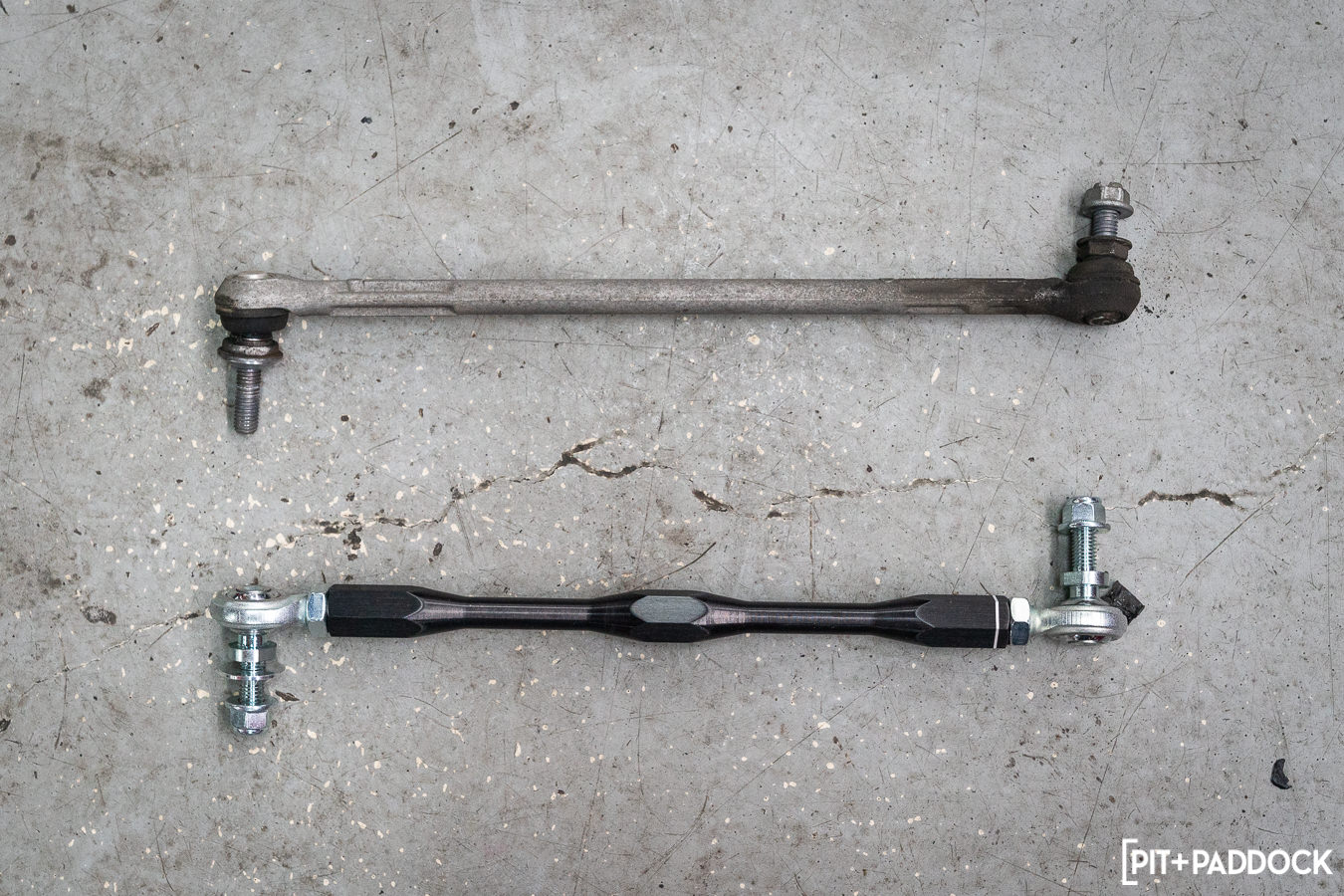 Other components that require more effort than the standard bolt-and-go are the front tie-rod ends. Not only produced with a unique clamp design instead of a jam nut but also roll center adjustment, these tie rod ends will aid in bumpsteer removal.