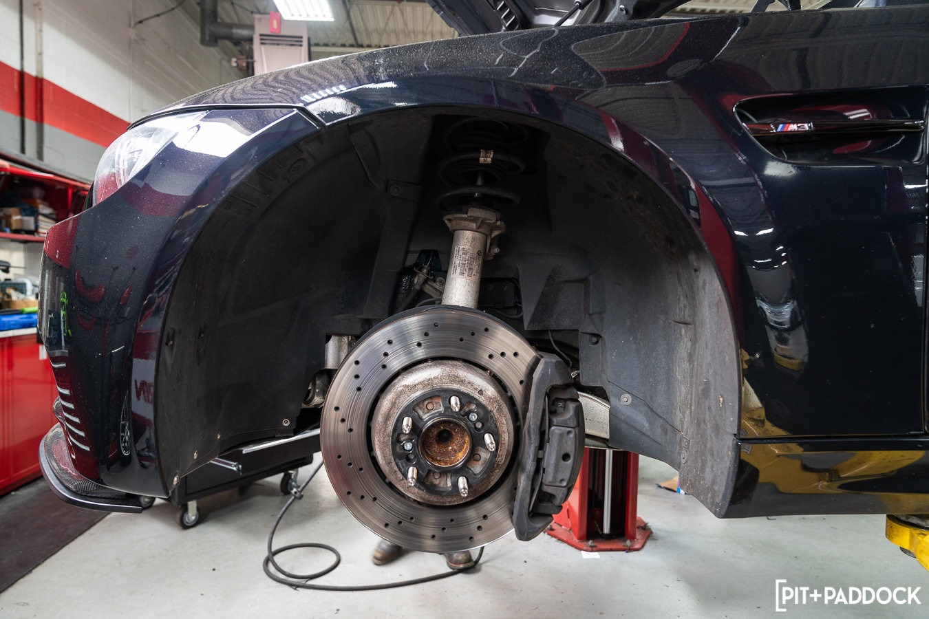 It hasn’t been that long since we introduced our Project E92. If you missed it, it’s a 2013 BMW M3 Competition (LCI) with a dual-clutch transmission, carbon fiber roof, and finished in Jerez Black. In our last article, we improved upon the aural delight of the stock S65 V8 powerplant by equipping an Akrapovič titanium exhaust. Other areas of the vehicle still need upgrading, though. Most will be a bit more involved but yield a more visceral experience than the factory spec. The crucial areas of suspension, wheels, and tires are on today’s agenda. We again visited our friends and technical wizards at R/T Tuning in Montgomeryville, PA, to complete the installation. Let’s get into the new mods!