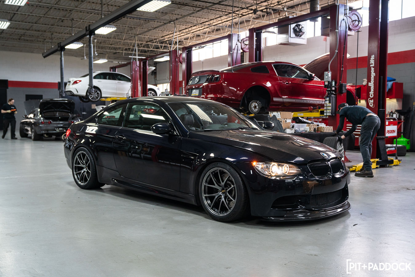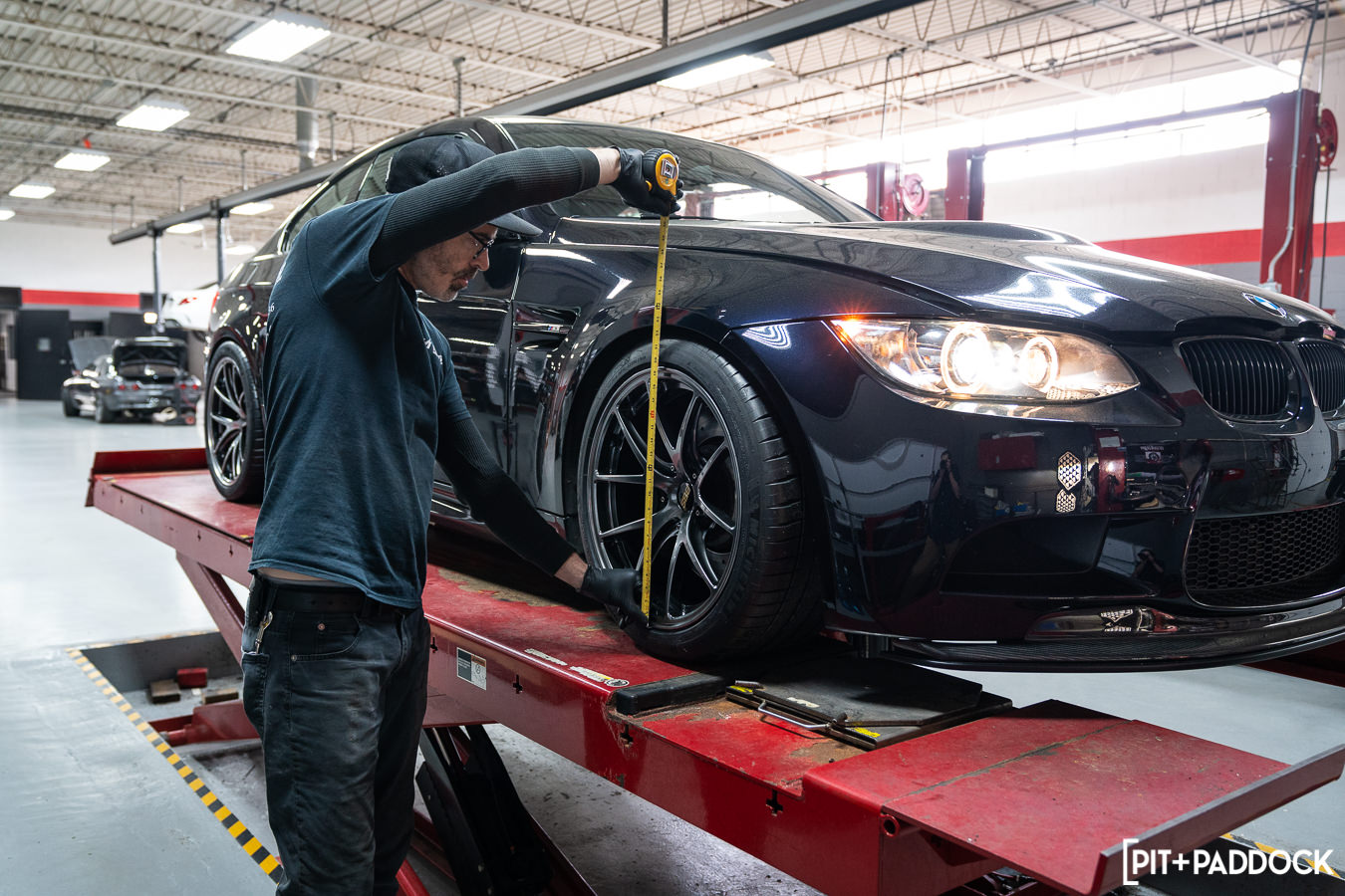 Next, Pat rounded out the installation using a Hunter touchless tire mounting machine to strap the Michelins to their final resting place on the BBS RI-A wheels. Lastly, perching the E92 atop R/T Tuning’s Hunter in-ground alignment rack and trueing up all of the angles. There’s plenty more to come on Project E92, so stay tuned for the next phase of modifications.