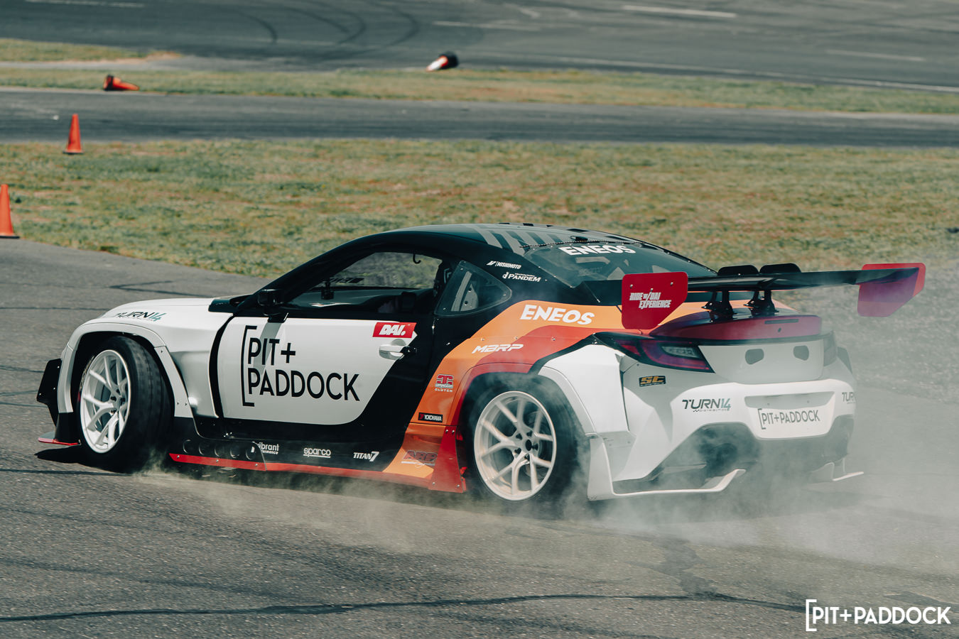 If you haven’t already checked out our feature video of Dai Yoshihara ripping around the office parking lot of Turn 14 Distribution headquarters, make sure and take a minute to watch as it’s one of the coolest things we’ve ever orchestrated here at Pit+Paddock! 100 invited guests and media were treated to a drift demo of Dai’s reborn 1,000hp Subaru BRZ, a car he used in Formula DRIFT competition for eight years. Now, it’s a purpose-built, right-hand-drive, sequential-shifting taxi that will make its way to events around the U.S., the first being the all-Subaru Wicked Big Meet at Stafford Motor Speedway in Connecticut.