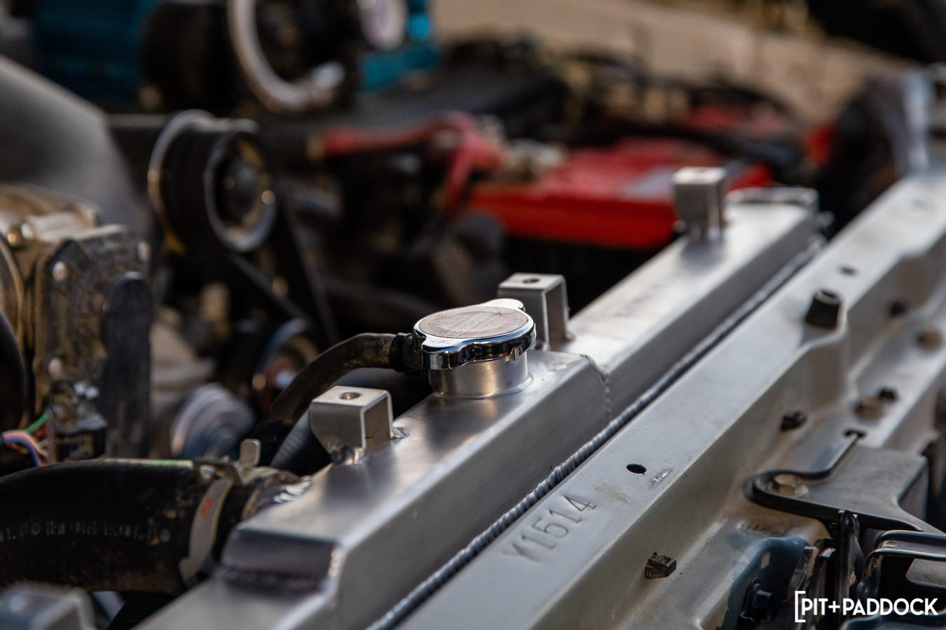 Another key element in maintaining proper cooling capacity is to use a high-pressure radiator cap. A high-pressure cap with aftermarket radiators can aid your vehicle’s cooling system by causing the coolant’s boiling point to rise, increasing cooling efficiency. Oshiro recommends using the Koyorad SK-C13 high-pressure radiator cap rated at 1.3 bar (kg/cm2) or 18.5 psi or equivalent deep plunger style radiator cap with the HyperCore radiator.