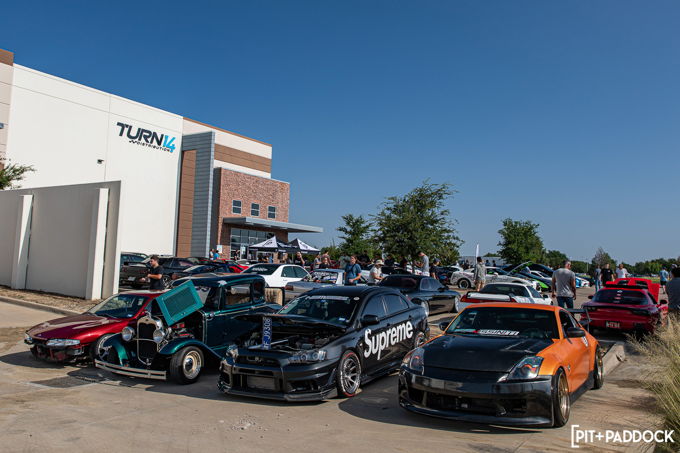 - With presenting partner Gates, Pit+Paddock hosts the first Cars+Coffee meet at Turn 14 Distribution’s Arlington, Texas, distribution center.