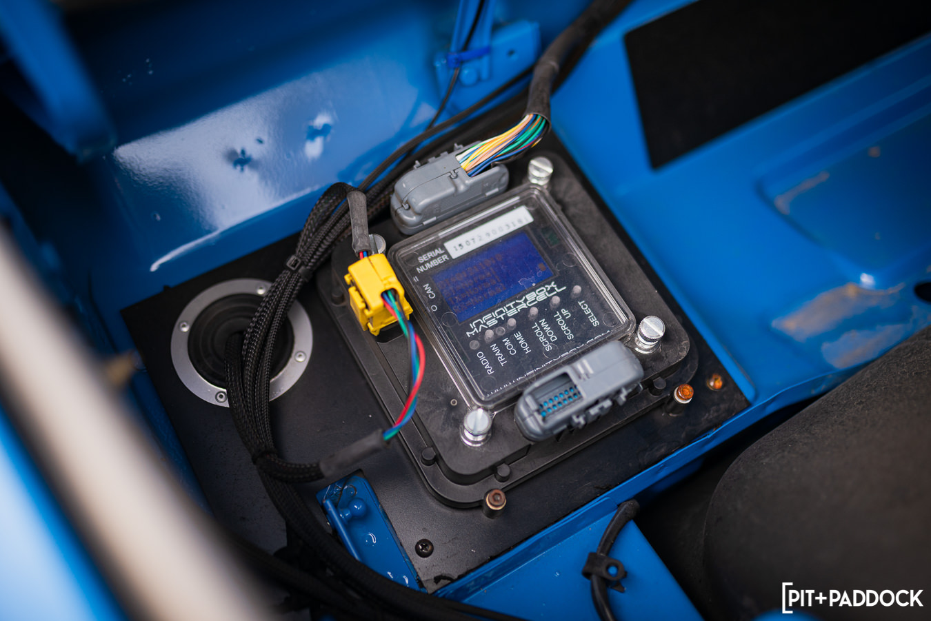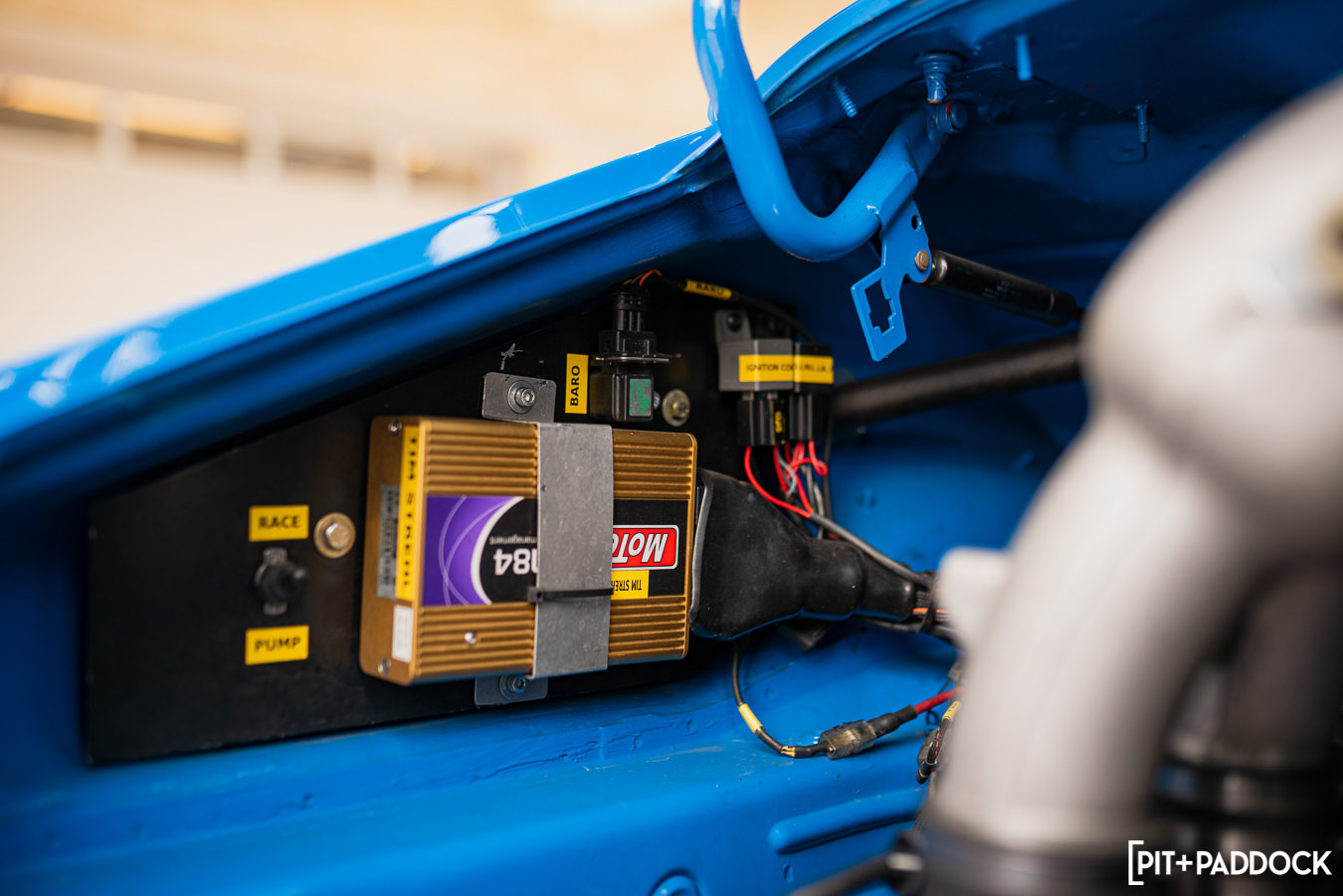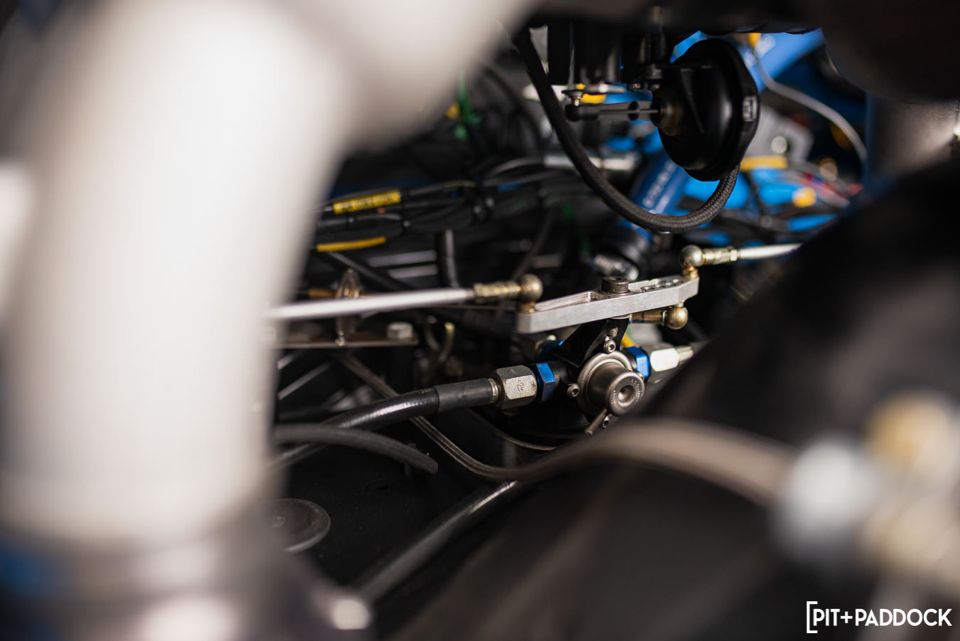 The focus for Tim’s RSR 993 was primarily for the track, so other than the Alcantara headliners, dash, and custom door cards, the interior is pretty bare. A cage was welded in with OMP bucket seats, and Schroth Racing 6-point harnesses for safety. A Tilton pedal box for footwork controls the throttle and braking. A dual master cylinder helps adjust front and rear brake bias with an adjustment knob located on the dash.