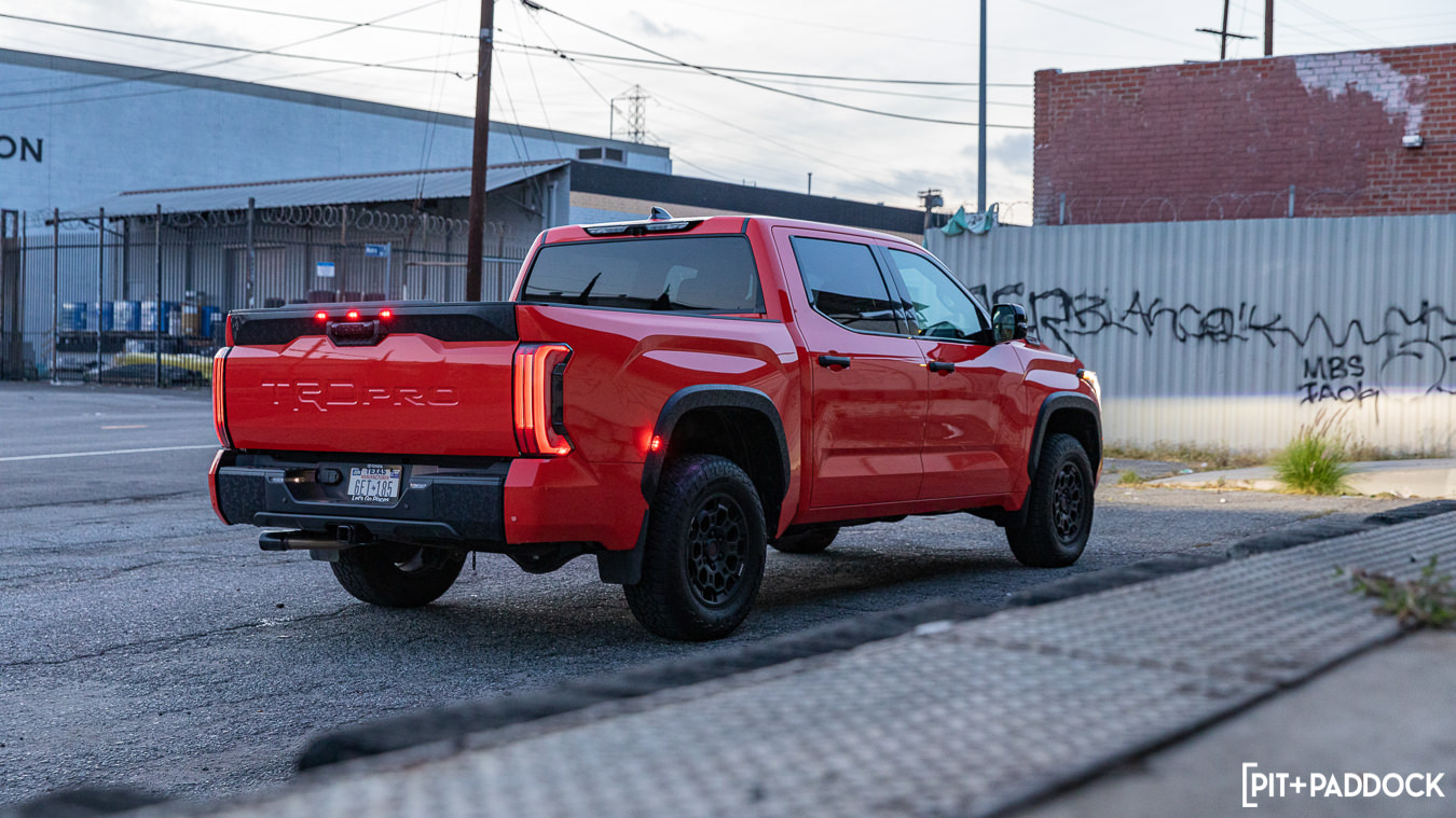 Cruising around town was not only relaxing but gratifying. I’ve never felt so at ease behind the steering wheel of a big truck. There’s admirable handling performance, too. Zipping around twisty corners and hugging sharp on- and offramps were fun sort of, in a silly imaginative way. There’s obviously some body roll, but the 6,000-pound Tundra isn’t afraid and can move with a bit of grace, like a sumo wrestler. I also grade the overall ride comfort above average as it’s not overly stiff or bouncy. This is much thanks to the new five-link coil-spring rear suspension that helps keep the rear-end planted and TRD Pro-specific Fox shocks which allow for high-speed suspension travel that smooths out bumps on and off the road.