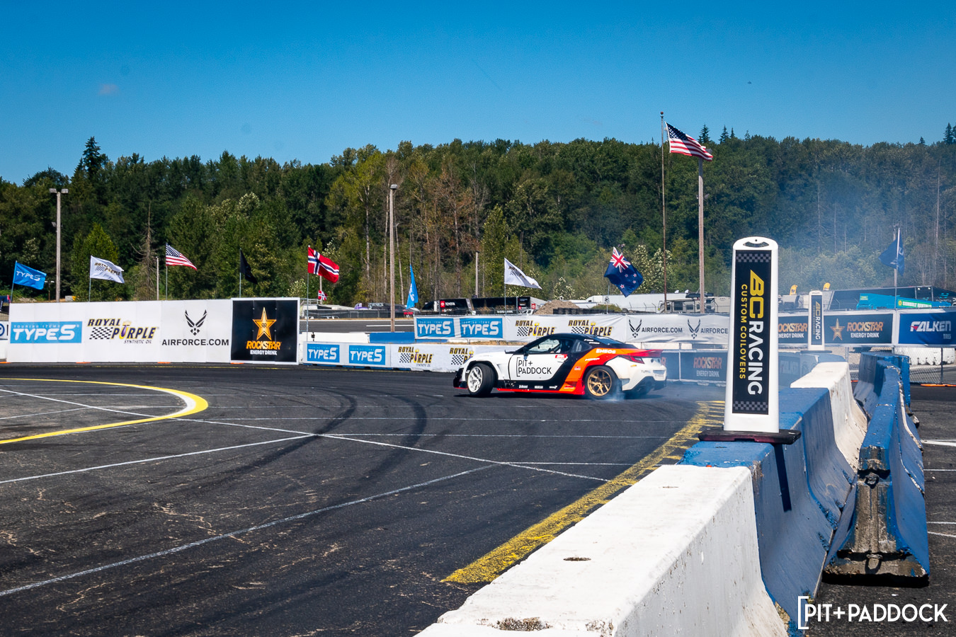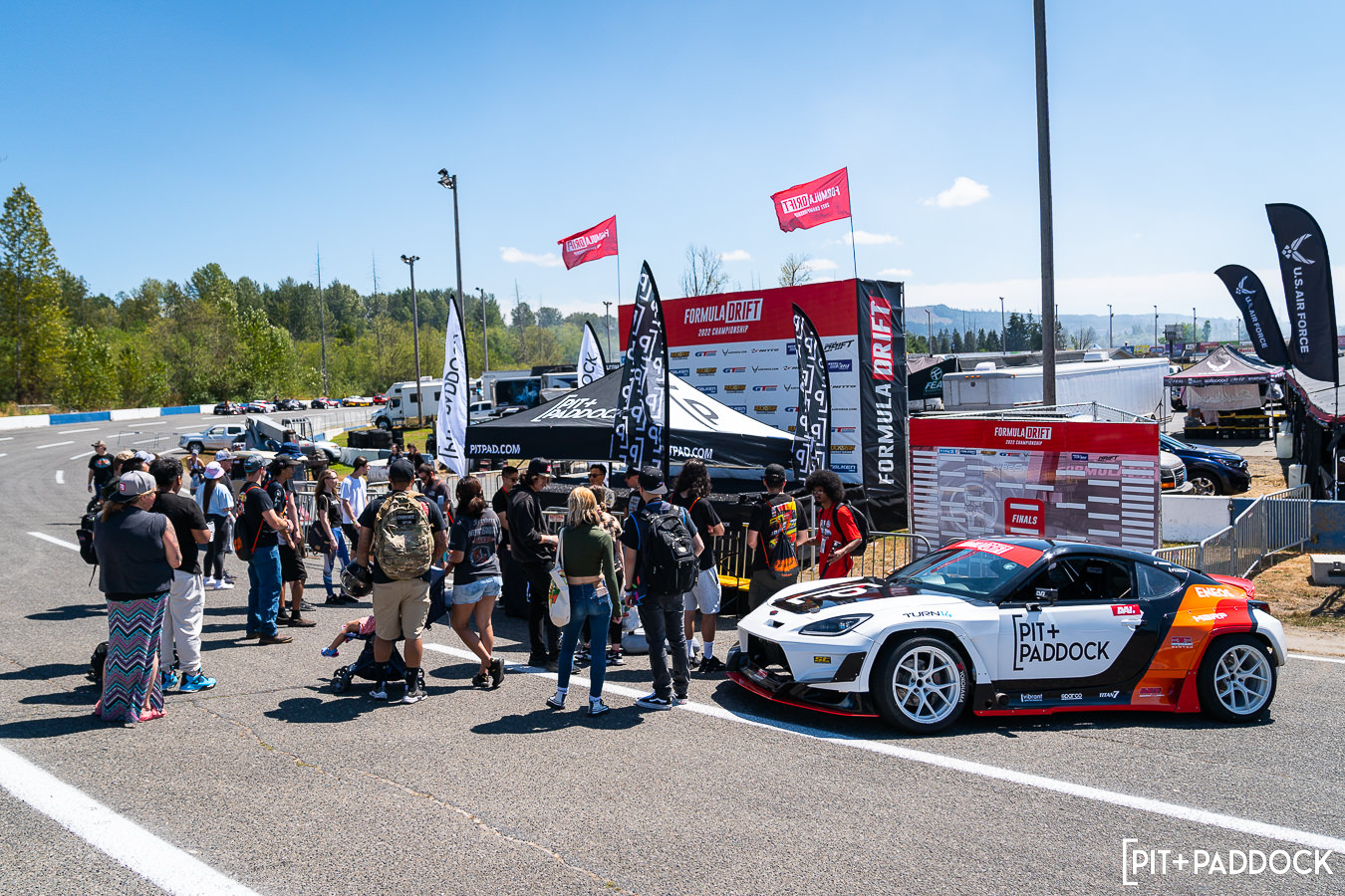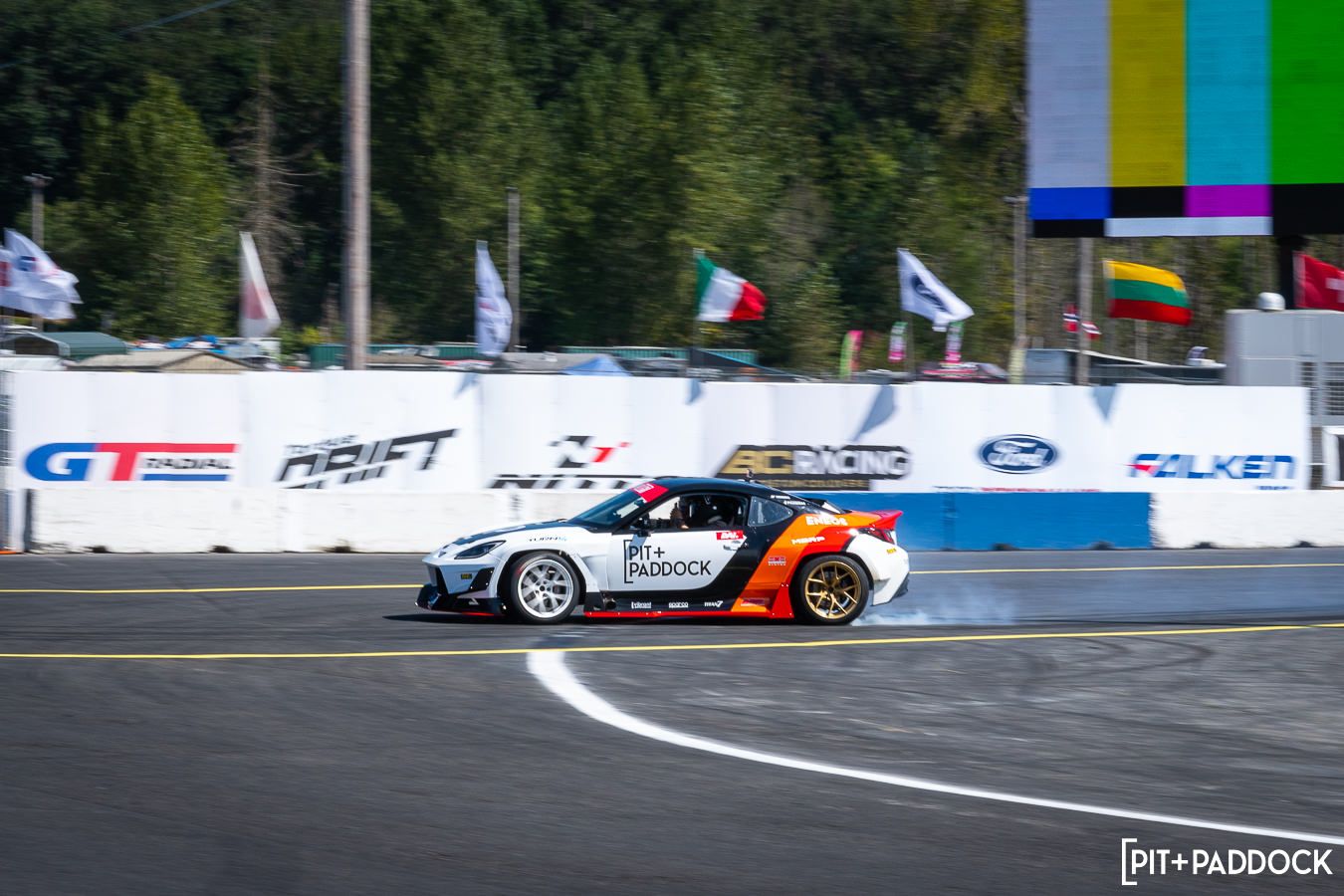 The premise behind Pit+Paddock’s “Ride with Dai” experience is simple: convert Dai’s 1,000hp Subaru BRZ comp car into a demo vehicle which would be strictly used to give fans drift ride-alongs. Dai and his team at Eimer Engineering spent the offseason updating the LS-powered coupe with a tube frame front chassis, double A-arm suspension, and 2nd-gen BRZ facelift with Pandem widebody. And since it was our idea, you can guess what we did with the livery next…