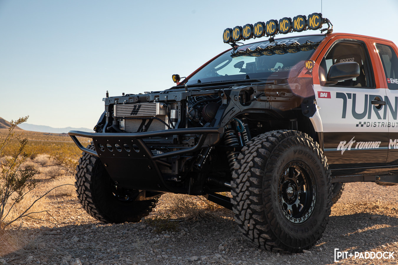 R/T Tuning has built the ultimate off-road Nissan Frontier, and its official driver will be Formula DRIFT and Pikes Peak champion, Dai Yoshihara. Debuted at the 2022 SEMA Show in the ENEOS booth, the Turn 14 Distribution x ENEOS x MBRP Frontier is Dai’s first off-road race build, and you can expect to see this rig undergo its first testing/demo days at King of the Hammers.