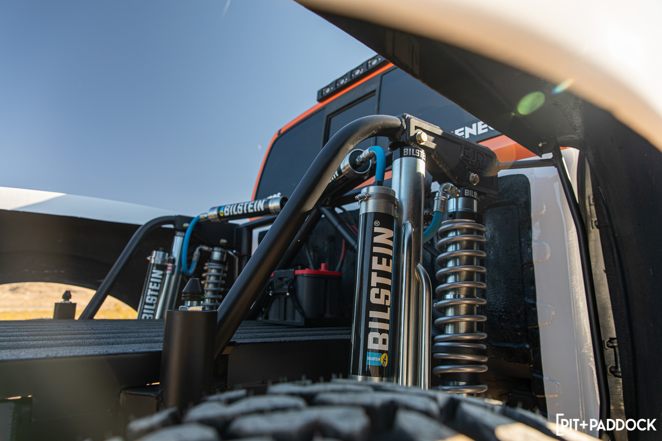 - The Baja-ready chassis was dialed in by Eimer Engineering using a combination of a CJD Racing long travel kit, Bilstein coilovers, Eibach springs, Weld beadlock wheels, and Yokohama Geolander M/T tires.