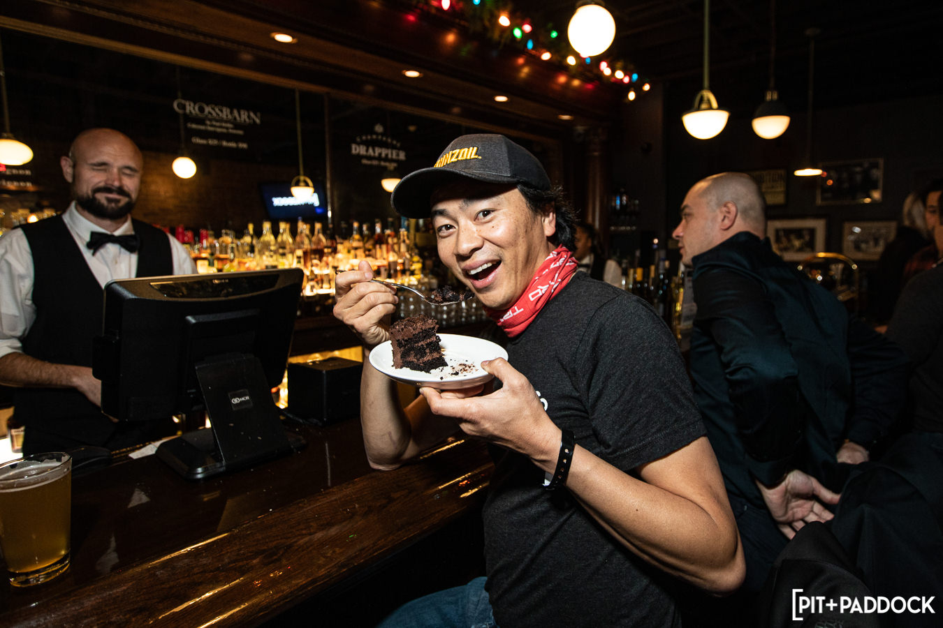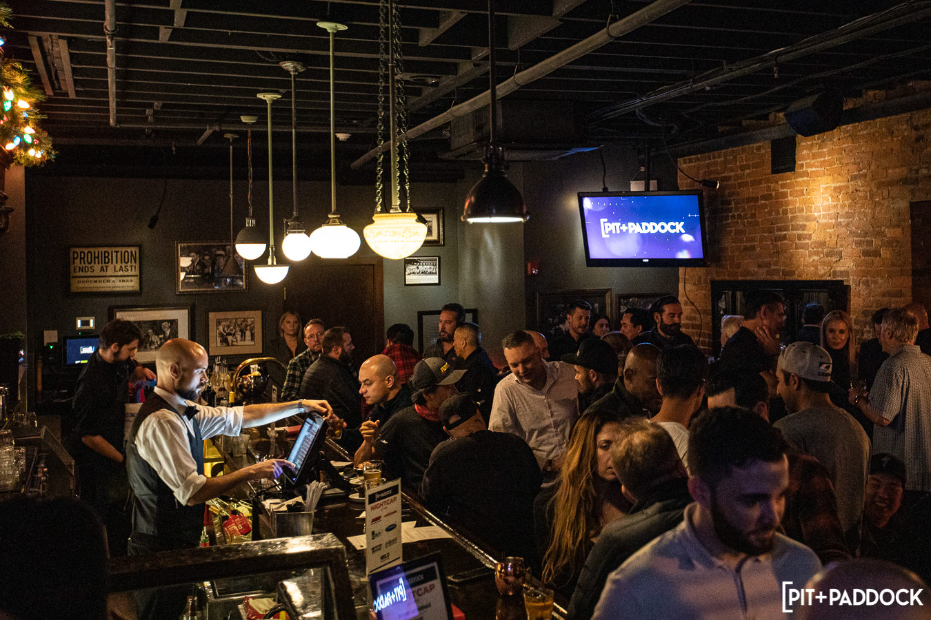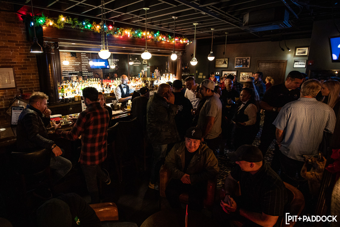 On Friday night, the team at Pit+Paddock took over the 1933 Lounge that sits atop the world-famous St. Elmo Steakhouse. Presented by ARP, Powerstop, Radium Engineering, Supertech, Turbosmart, Vibrant Performance and Weld Racing, the Nightcap encapsulates everything we loved about Turn 14 Distribution Industry night, but in the intimate atmosphere of the 1933 Lounge. The speakeasy-style ambiance with a restored vintage from the 1800s sets the tone, not to mention the shrimp cocktail appetizers are considered one of the best in the country. For anyone that’s been to PRI in the past, 1933 Lounge is legitimately the go-to hot spot during PRI week, even with its minimal capacity, but the classy yet inviting vibe is unmatched in a city like Indianapolis. Unlimited cocktails, tasty desserts, and a few fun raffle prizes made this night one for the books for our exclusive VIP guests. Our friends at Turbosmart were generous enough to spread some holiday joy by giving every guest a fresh black hoodie adorned in both the Turbosmart and Pit+Paddock logos.