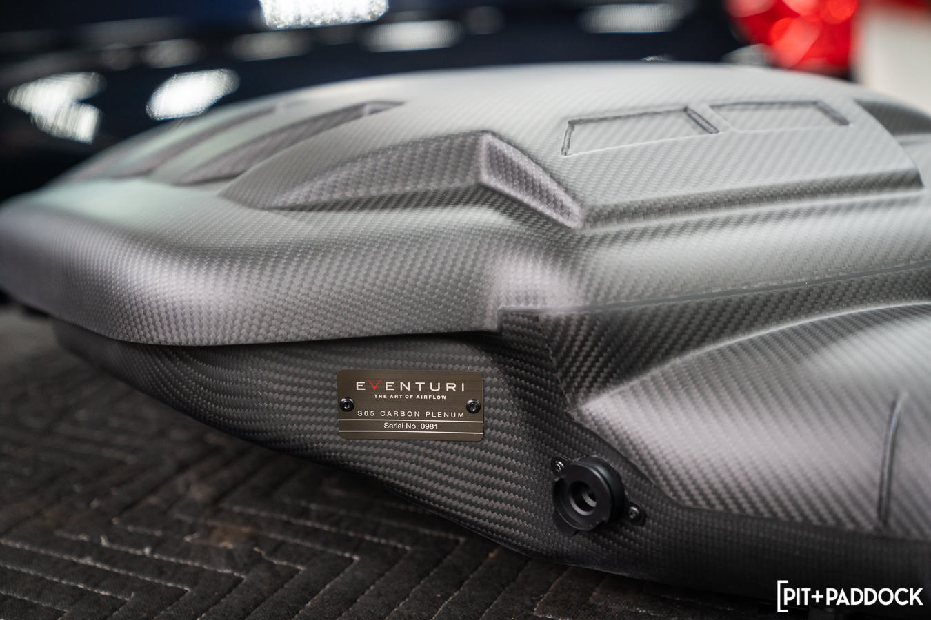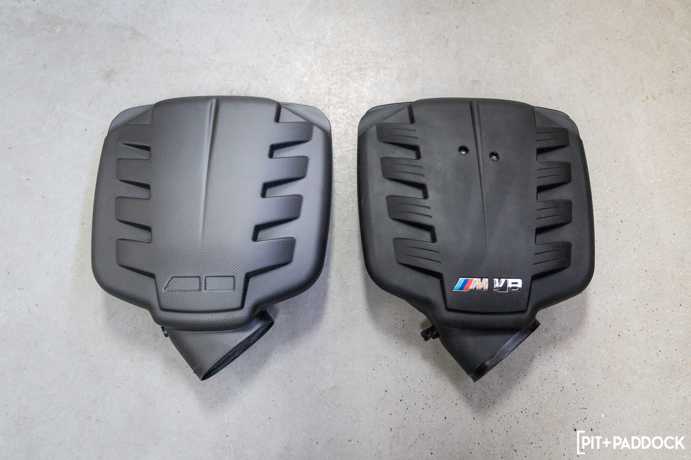 Eventuri’s matching carbon fiber airbox lid (EVE-E9X-CFM-ARB) adopts a similar philosophy to the plenum. It’s all OEM in shape and size, but thanks to its thinner (yet stronger) carbon fiber construction, more sound is allowed to penetrate the cabin for more theatrics.