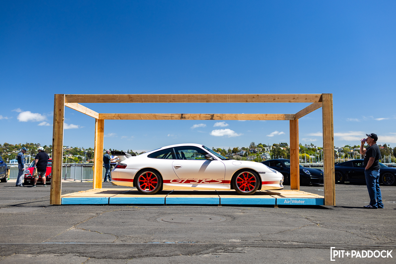 Well, the layout wasn’t revolutionary from the day before, but it honestly didn’t need to change much for Air | Water to make an impactful impression. Most of the already impressive structures were peppered with all-new automotive artwork; where there were air-cooled cars twelve hours prior sat water-cooled examples in present time. Some familiar faces from Luft were sitting in new places with fresh companions. Platforms were stamped with Air | Water branding and modern machinery to match. It was interesting to see the same setting take on a new light so quickly.