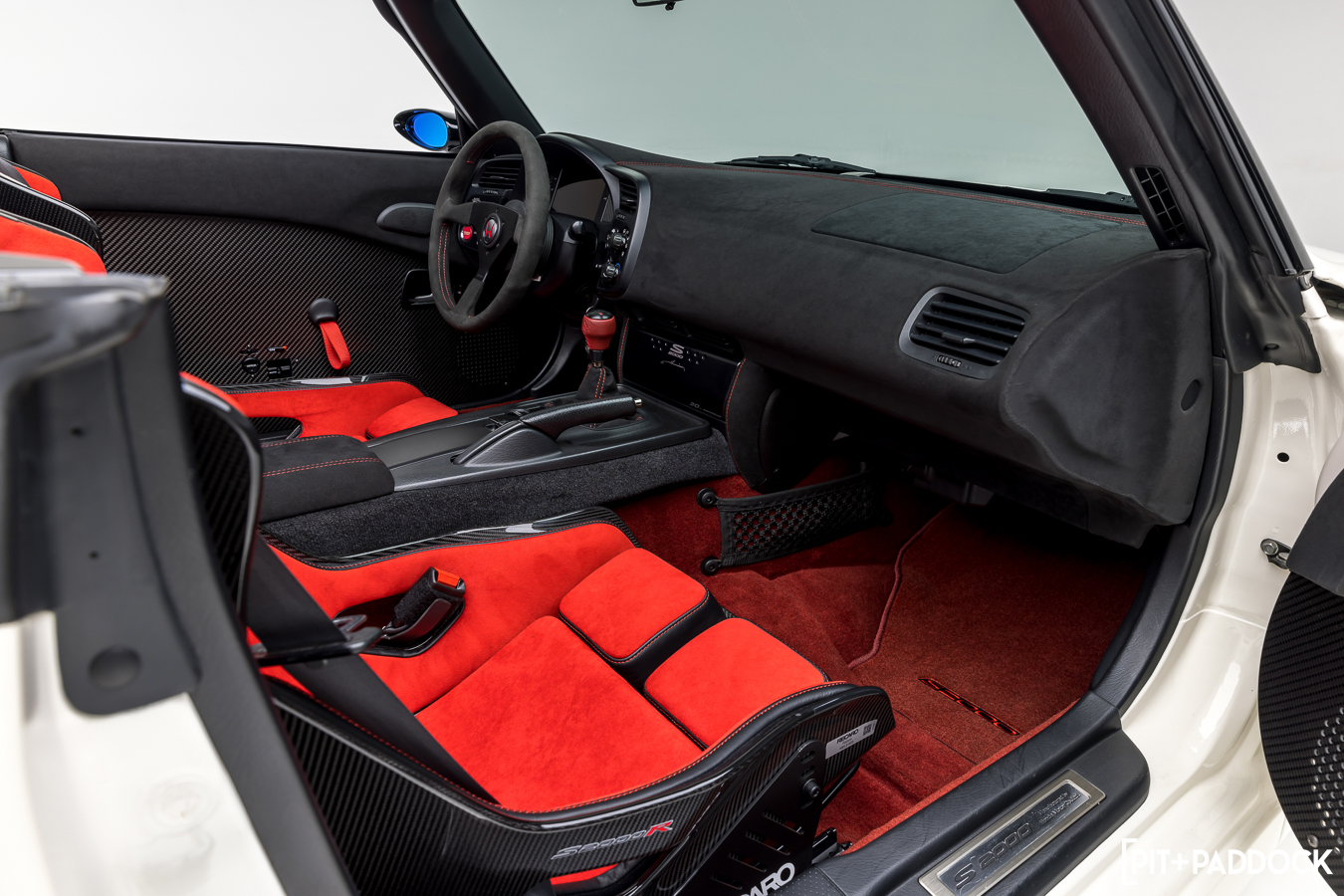 Chassis #000, as it has been called, preserves its sense of subtlety throughout. Okay, the red Recaro Podium carbon fiber buckets aren’t exactly low-key, but Honda fitted the original S2000 with quite a loud pair of red seats, too. Aside from that indulgence, a set of EVS Tuning carbon fiber door cards and Alcantara treatments to the dash and trim round out a very tidy cabin. Mike Chang, co-president of Evasive Motorsports, admits that the interior is “mostly all stuff anyone can purchase”, but alludes to future plans to make more pieces that are tailored to the S2000R exclusively.