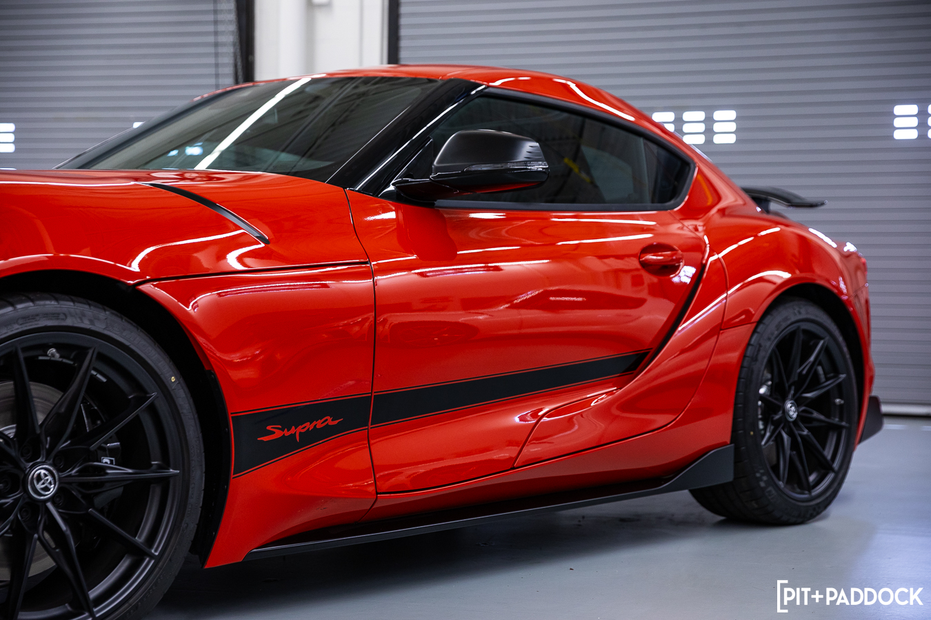 Stickers. The black stripe on the doors and front fenders are merely vinyl graphics that include an integrated Supra logo. They’re not too obtrusive and flow smoothly with the body.