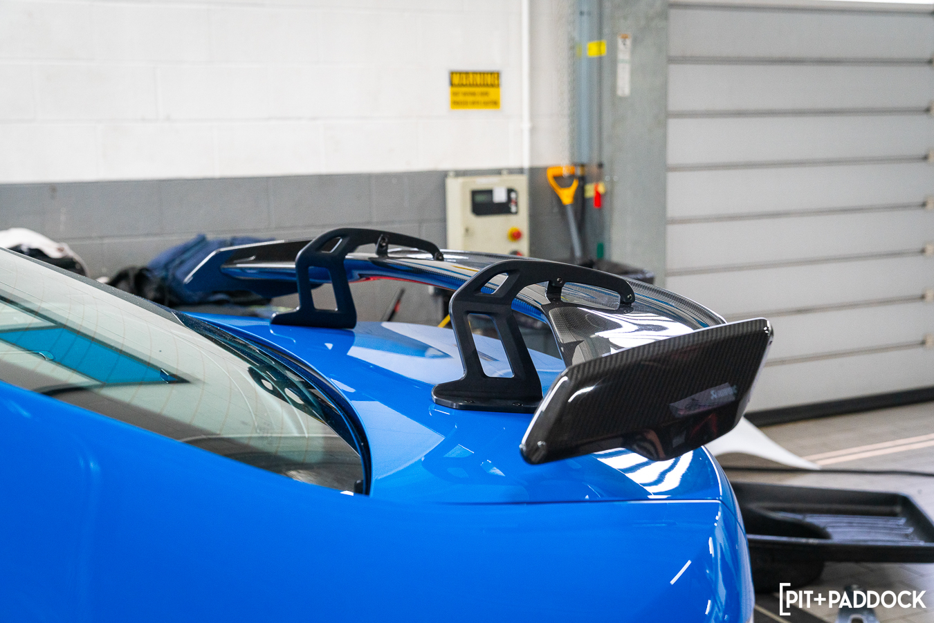 The analysis also proved that Akrapovič’s design direction was correct. The “swan neck” uprights create a more aerodynamically efficient platform in both straight line and cornering. This tactic allows the underside of the wing to operate without the airflow separation that is inherently present with traditional mounting solutions. At the trailing edge of the wing blade is an integrated Gurney flap that, in layman’s terms, also provides additional downforce. As you’d expect for a true motorsport-grade wing, it’s also adjustable; there are three positions integrated onto the top side of the blade.