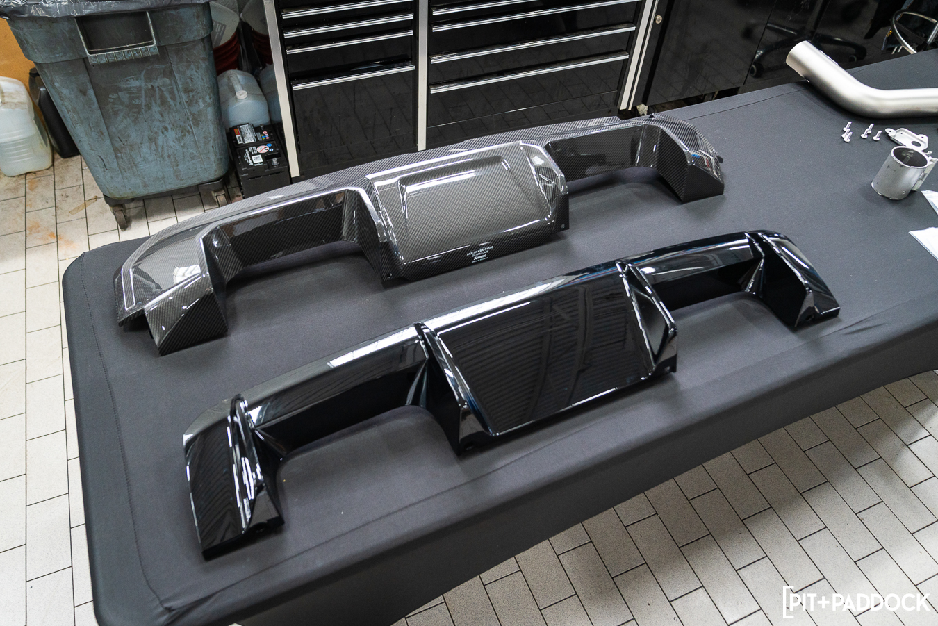 Rear Diffuser: While the exhaust was out, we took the opportunity to put on the Akrapovič carbon fiber diffuser. This piece repurposes all of the factory mounting holes, so once you’ve lined it up onto the bumper panel, it’s just a matter of pushing the diffuser in to seat all the tabs. The same treatment applies to the tow hook cover that we mentioned earlier.