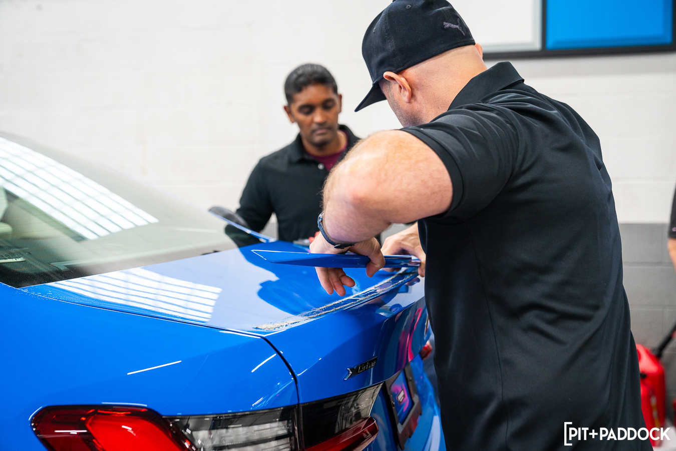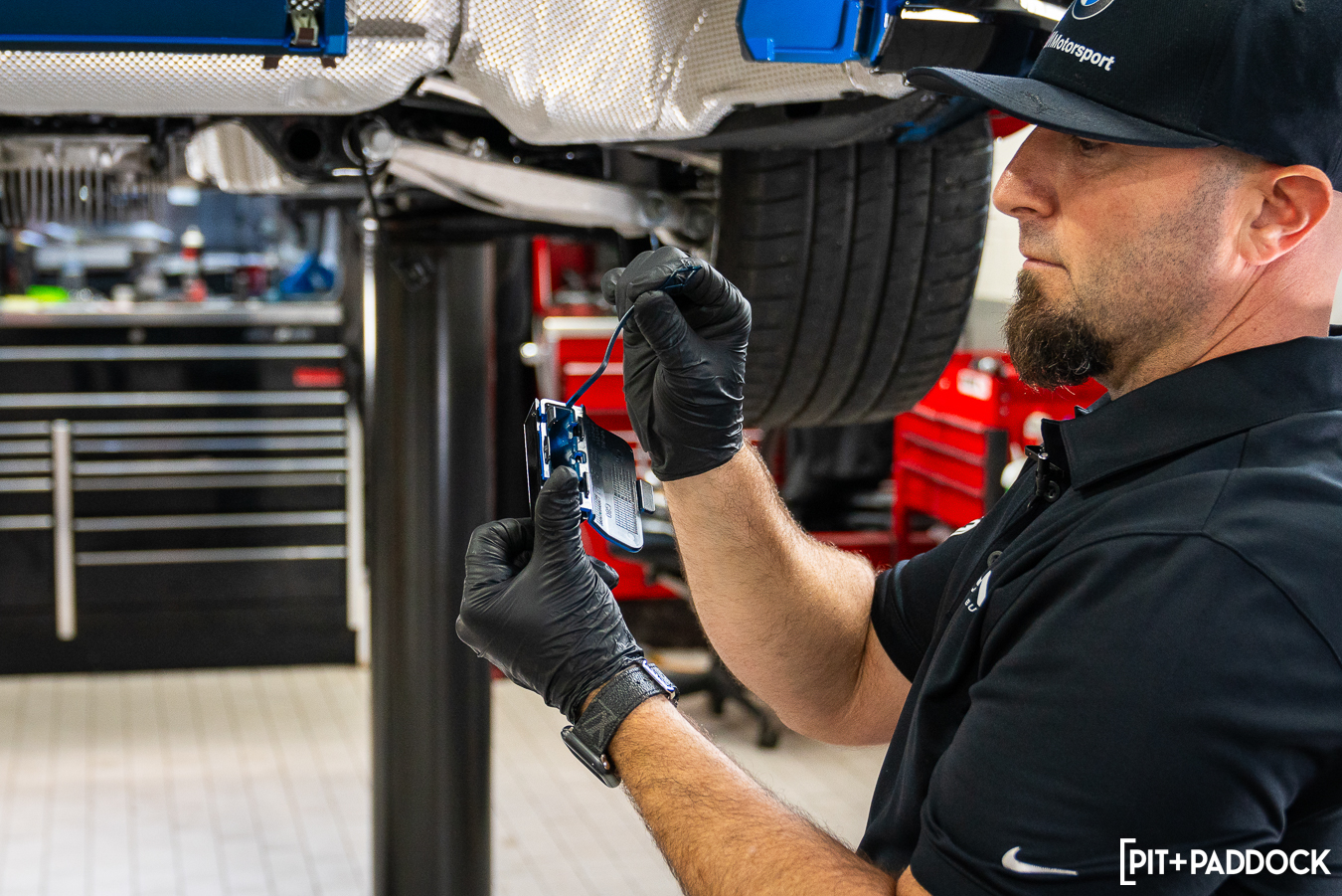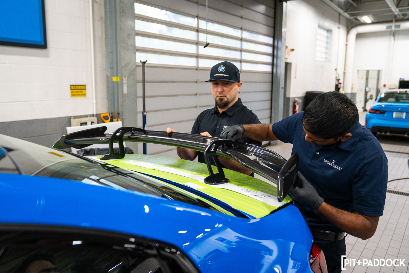 Rear Wing: Admittedly, we took our time with the rear wing. It was the first one in North America and we knew we had one shot to drill the trunk correctly, or else we’d set the build back substantially. Fortunately, we had the capable hands of Thompson BMW at our disposal. I backed away to let Eric and Mikey, our Thompson BMW tech, do all the hard work.