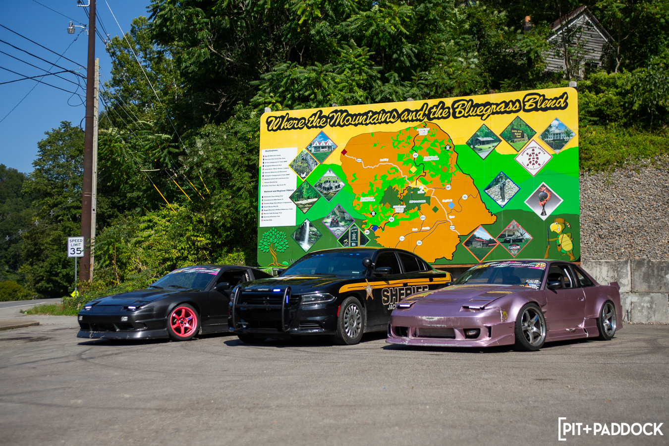 En route to the Media parking area, he hit a particularly interesting stretch of backroad that made him second guess his 50mph speed. It was downhill, fast, and technical. On one side were cliff walls and on the other, were guardrails protecting motorists from a potentially deadly drop. “I inquired which way and how far the circuit was from where we were parked,” said Sillars. “He paused and smiled and pointed to where I had just come from, Iff you came from that direction, you just drove through it’.” It was at that moment the enormity of the situation became apparent for Brad — this was a public highway road in Jackson County, KY with very little room for error — and Drift Appalachia was going to shut it down to drift it.