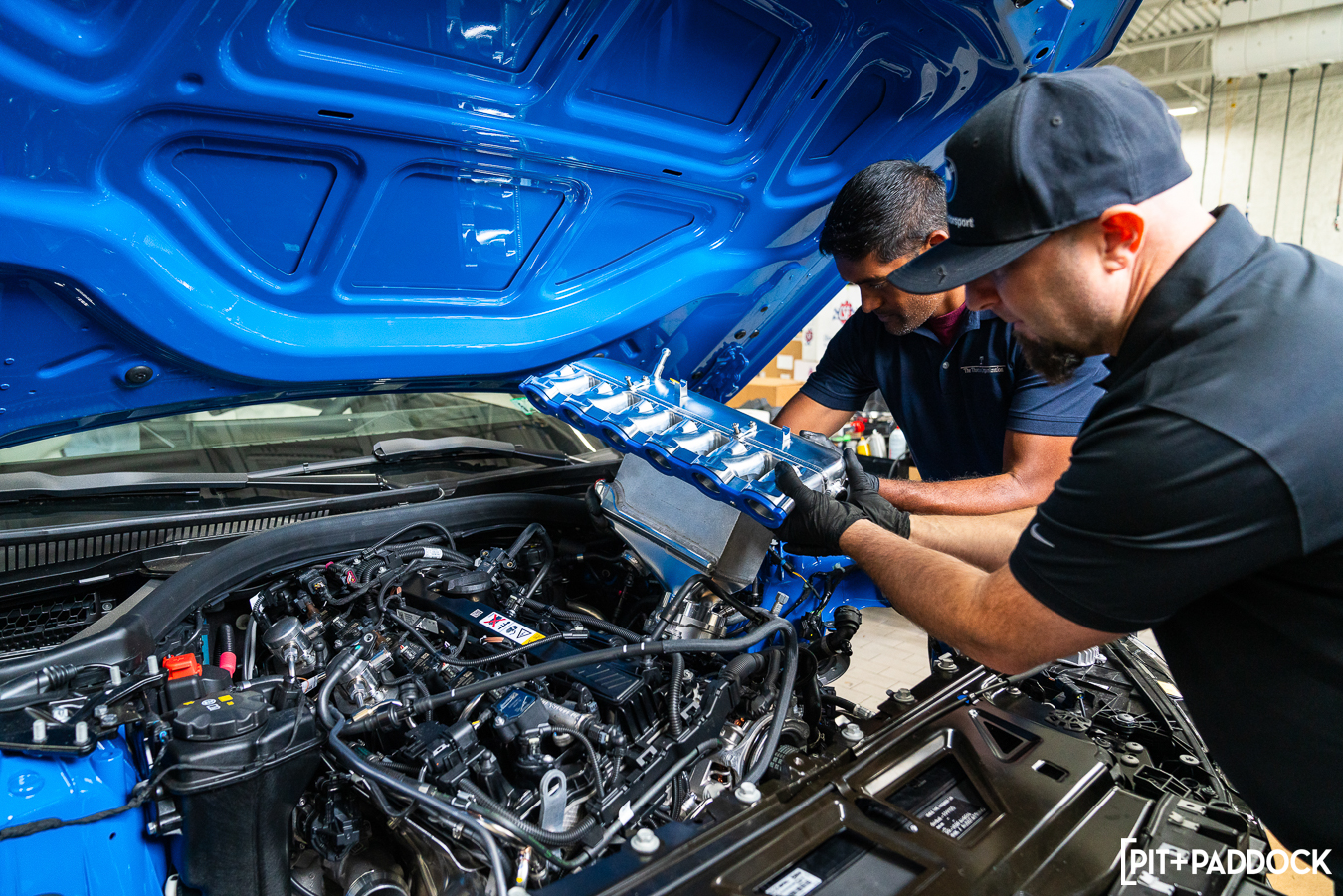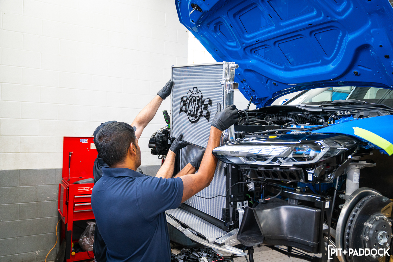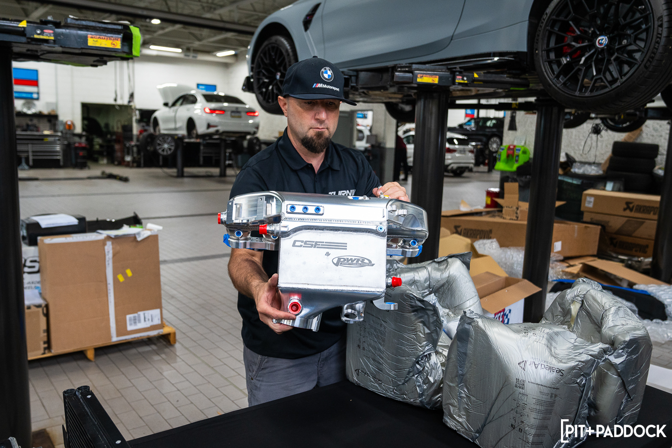 The effort required to complete this upgrade package was minimal, despite its massive benefit. Everything was advertised as plug-and-play and went in as such, which is a huge testament to each of the brands’ commitments to quality. Having Mikey, our Thompson BMW tech, take us from start to finish was a huge help as always — he had the front bumper off and all of the stock components out of the engine bay before Eric and I could unbox the parts. I was a bit unsure whether the Eventuri carbon fiber engine cover would fit over the CSF charge-air cooler manifold, but there was, again, no drama.