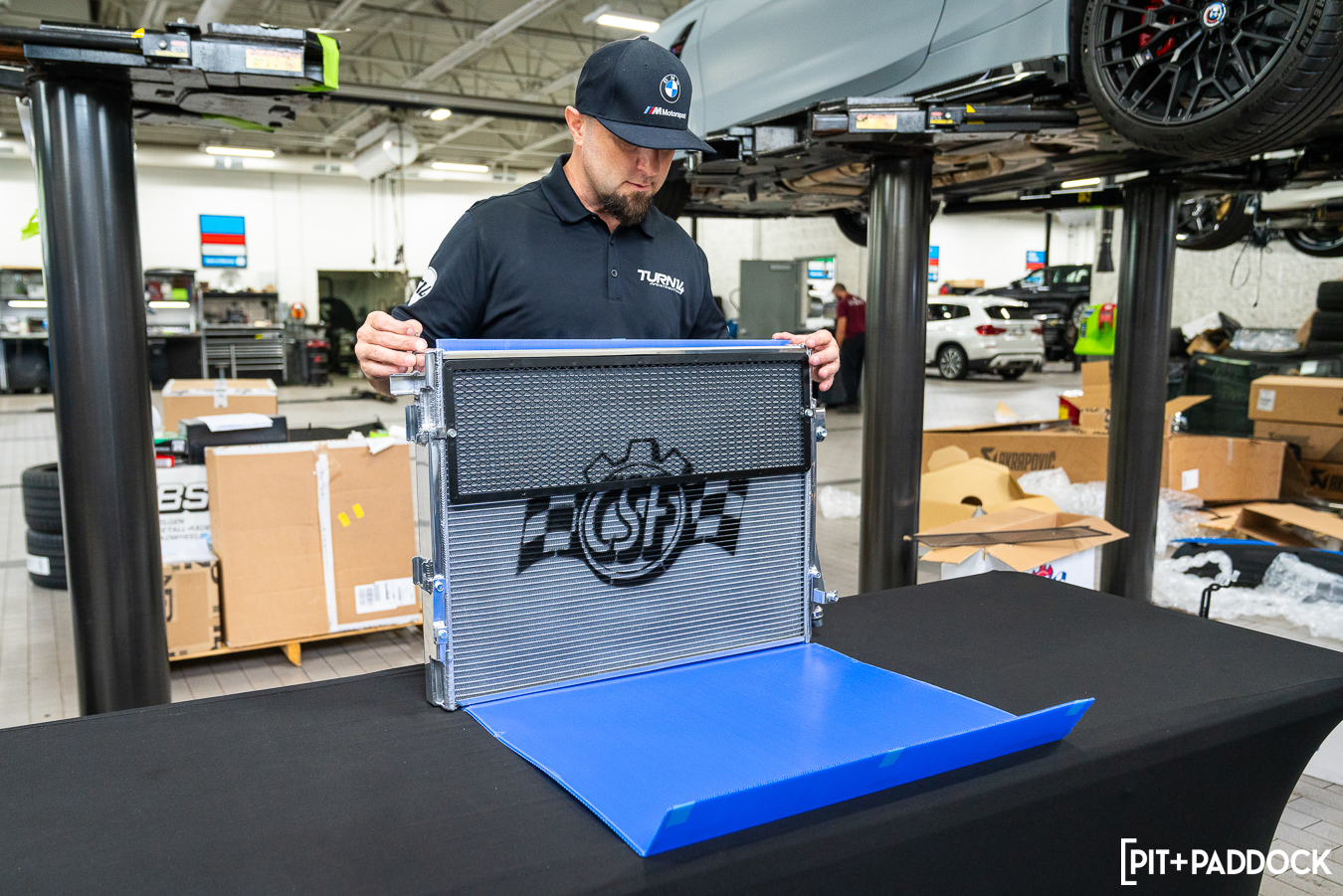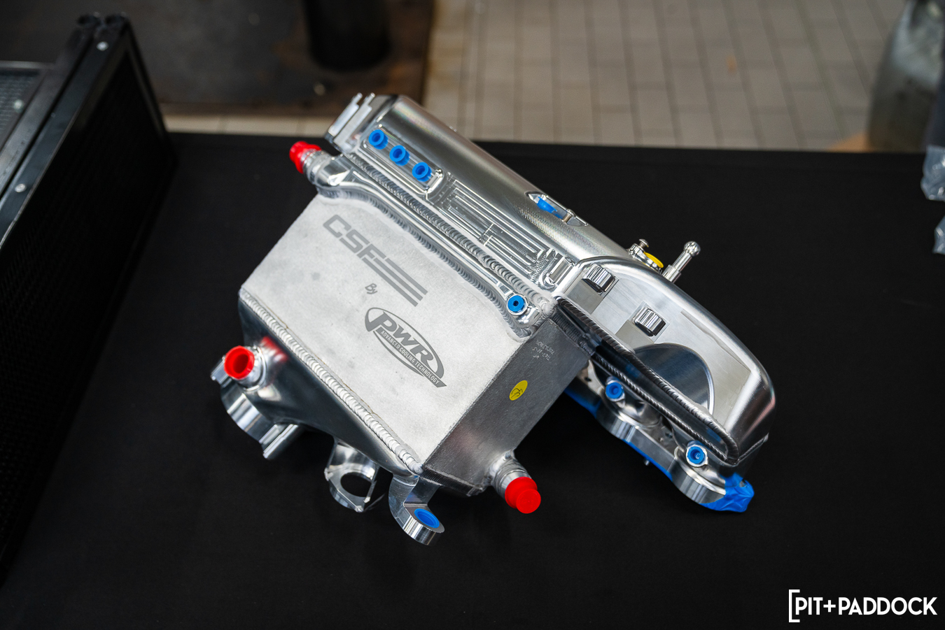 CSF’s party piece is its “level-up” charge-air cooler manifold (8233). Bar none, this S58 manifold is the company’s new “halo” product and boasts hundreds of hours of valuable R&D and testing between CSF and PWR, its strategic tier-1 motorsport cooling partner. The CNC billet aluminum manifold has been CFD analyzed to validate air flow and performance characteristics, which are far superior to the OEM unit. Robust would be an understatement; it’s been pressure tested up to 120psi and can accept port injection too, if you are keen to explore the upper stratosphere of horsepower.