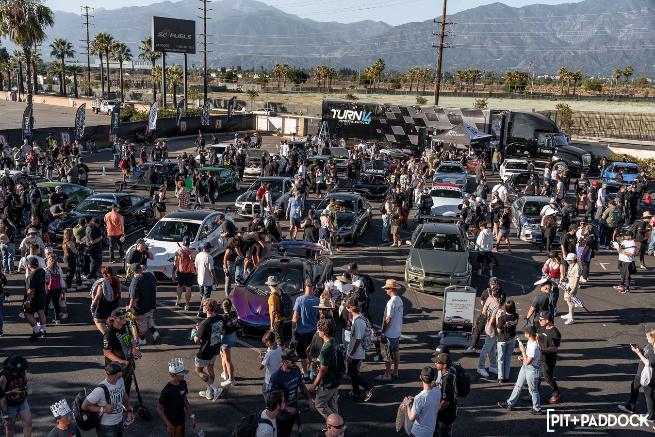 In Southern California, it rains around 30 days a year on average. We’re spoiled here with warm weather and constant sunshine on the regular, which is why there are so many car events that fill up our weekends year-round. However, when the clouds do come in and the water begins to sprinkle, our first instinct is to postpone or cancel events because we know that most people won’t dare drive their project cars in the rain. This was the case for Pit+Paddock’s Performance Car Invitational last year as severe weather conditions at Irwindale Speedway resulted in some no-show cars and a smaller attendance than expected. With this still in our mind, we knew 2023 would be our redemption year as there was nothing but blue skies and 80-degree temps in the forecast. The second annual Pit+Paddock Performance Car Invitational at Formula DRIFT Irwindale presented by Vibrant Performance was destined to be a banger, and sure enough, it delivered!