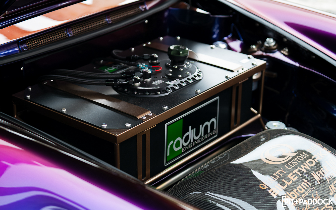 To reduce Radium Engineering’s contribution to strictly motorsport would be an injustice. As we alluded to before, the Oregon-based outfit’s fuel cells offer valuable flexibility to circumvent packaging constraints — especially in the case of engine swaps — that would otherwise halt a build to a stop. As a result, builders are able to execute their vision seamlessly and, in most cases, also proudly showcase the Radium Engineering fuel cell, too. This realization prompted the Radium Engineering boffins to fashion an optional carbon fiber fuel cell lid. This add-on further extends Radium Engineering’s competitive advantage, boasting a 68% weight advantage over its standard, aluminum counterpart, while also improving its aesthetic appeal tenfold.