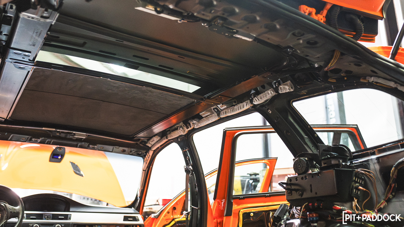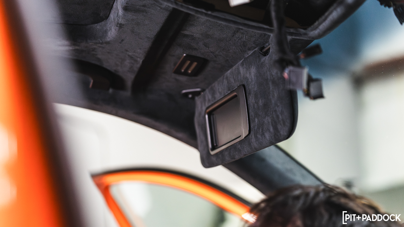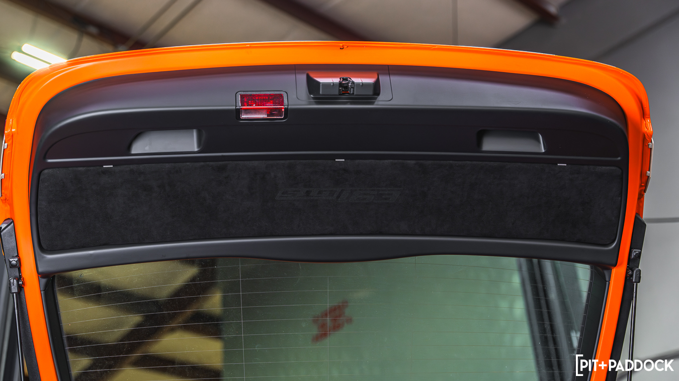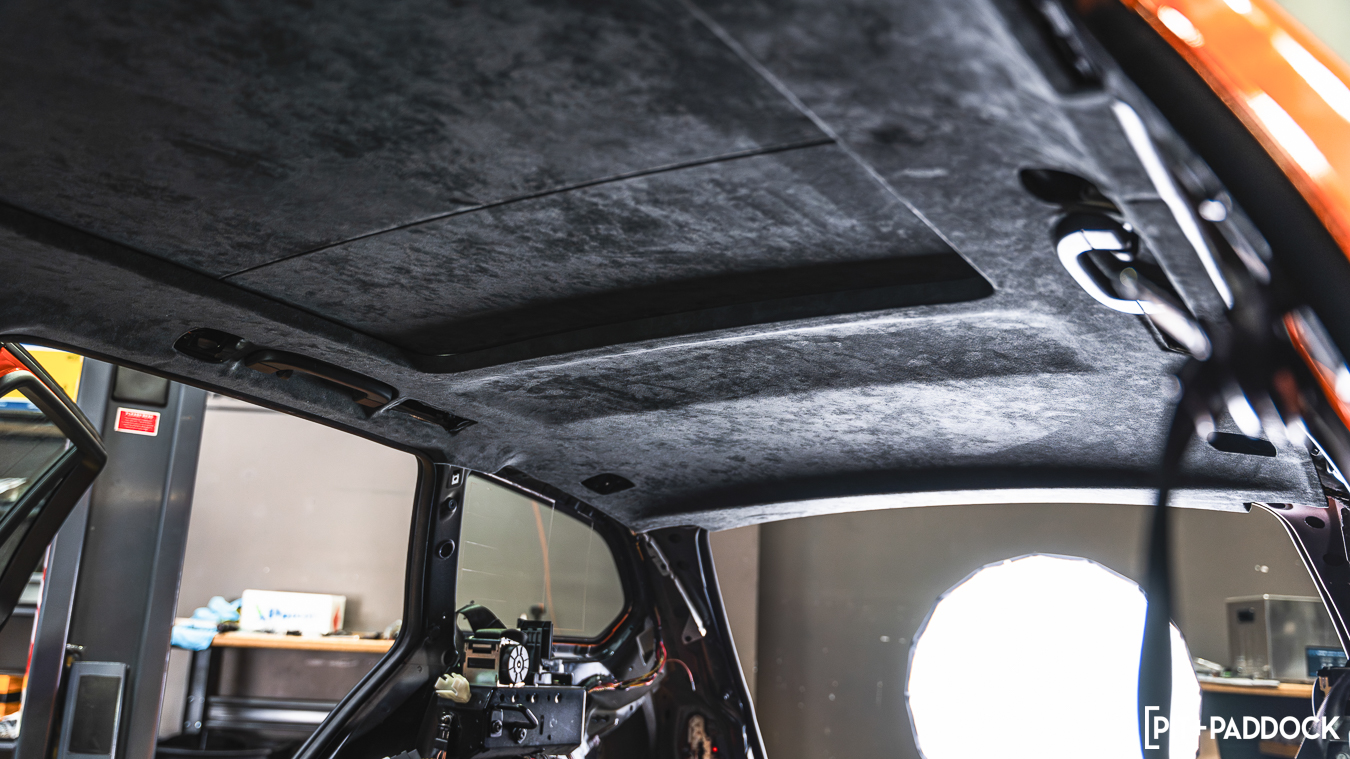 Although a majority of the attention for this round was paid to the interior, there were a handful of loose ends that still needed to be tied up elsewhere. Another round of coding from Alex at Alpine and Carbahn was first on the list, followed by exterior items like new rear quarter glass, a new windshield, Fire Orange roof rack deletes, and a fresh Fire Orange shark fin.
