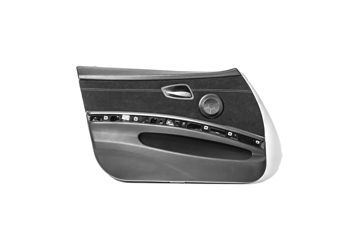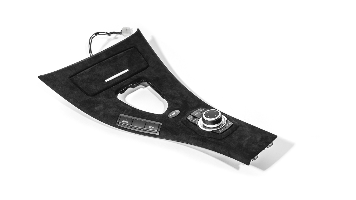 The full respray allowed us to make an honest assessment of each interior piece. In most cases, especially since the E91’s original headliner was light grey cloth, fresh, black OEM replacements — a sunroof switch panel, and every imaginable trunk panel piece amongst others — were deemed necessary to reflect our foundational commitment to creating a factory-perfect car. Black Alcantara was chosen to carefully reskin the headliner, the sunroof panel, sun visors, and each A, B, and C-pillar sections. Alcantara was swathed onto the E90 M3 center console to carry that treatment more cohesively throughout the cabin.
