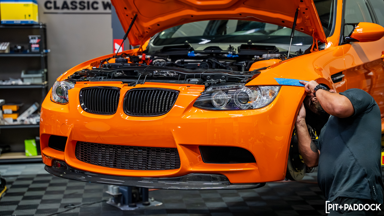 In only a handful of days, a lot will change. The fervent bustle that we have all grown accustomed to hearing all around us, the anticipatory build anxiety we’re accustomed to feeling at every moment of the day, and the all-encompassing fine-toothed comb that has dictated the last few months of our lives during this project will all give away to one pivotal moment: the public debut Pit+Paddock x Bilstein E91 GTS Tribute build.