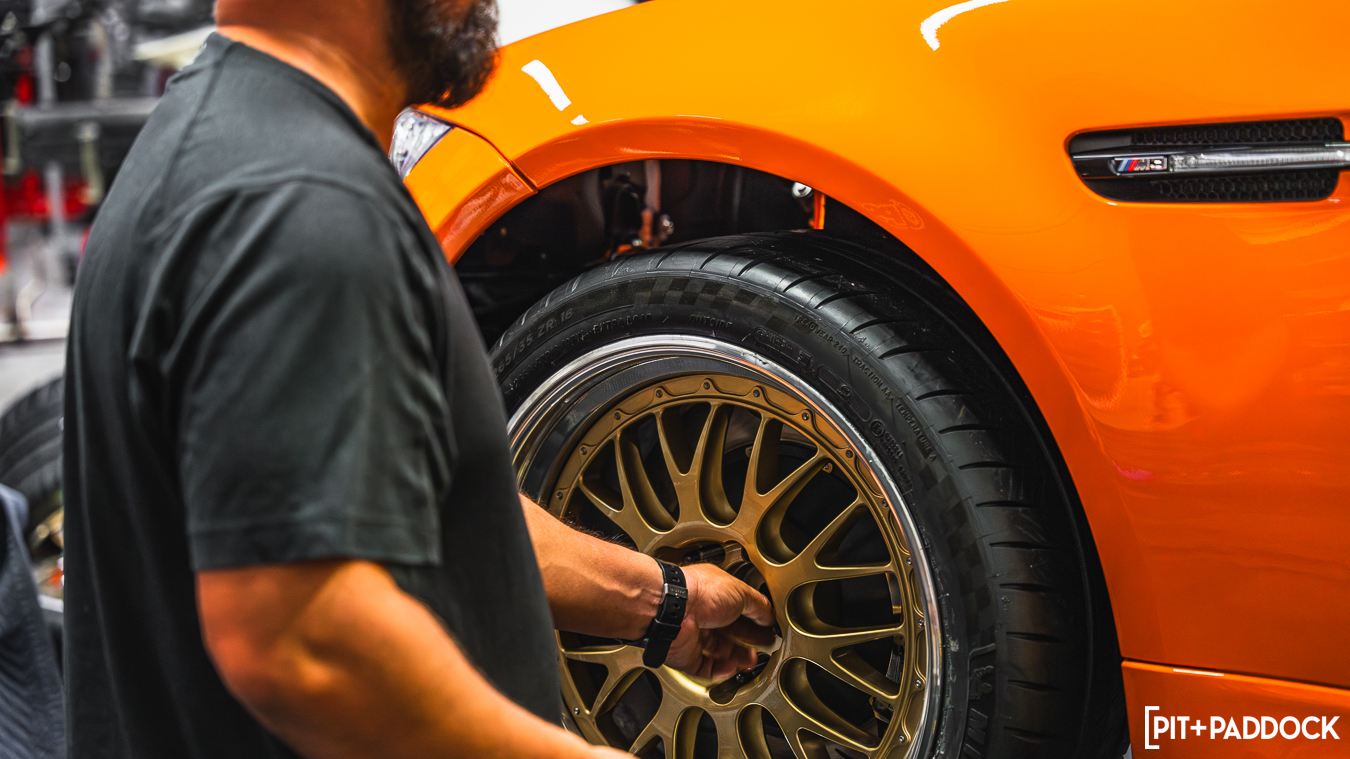 Wheels, Tires, and Alignment are Among the Finishing Touches Ahead of the Pit+Paddock x Bilstein E91 GTS Debut at SEMA 2023