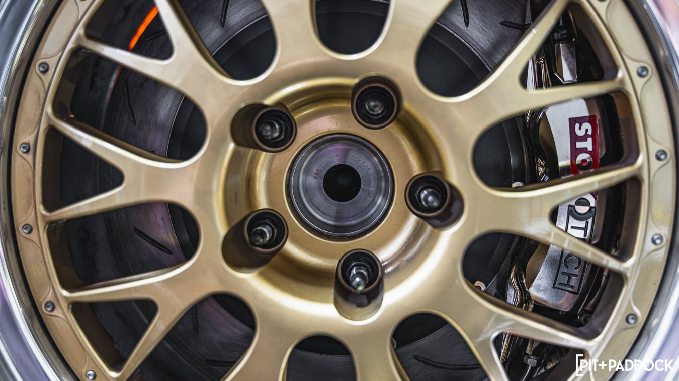 Before the wheels were bolted to the car, a set of Future Classic M12x1.5 wheel studs was fitted first. These chromoly studs are a considerable upgrade in tensile strength over the OEM lug bolts. Thanks to a unique 80mm threaded body, these studs accept up to a 15mm spacer without adding unnecessary rotational mass. Overall, the bullet-nosed studs will help speed up wheel changes and add yet another motorsport touch to the wagon.