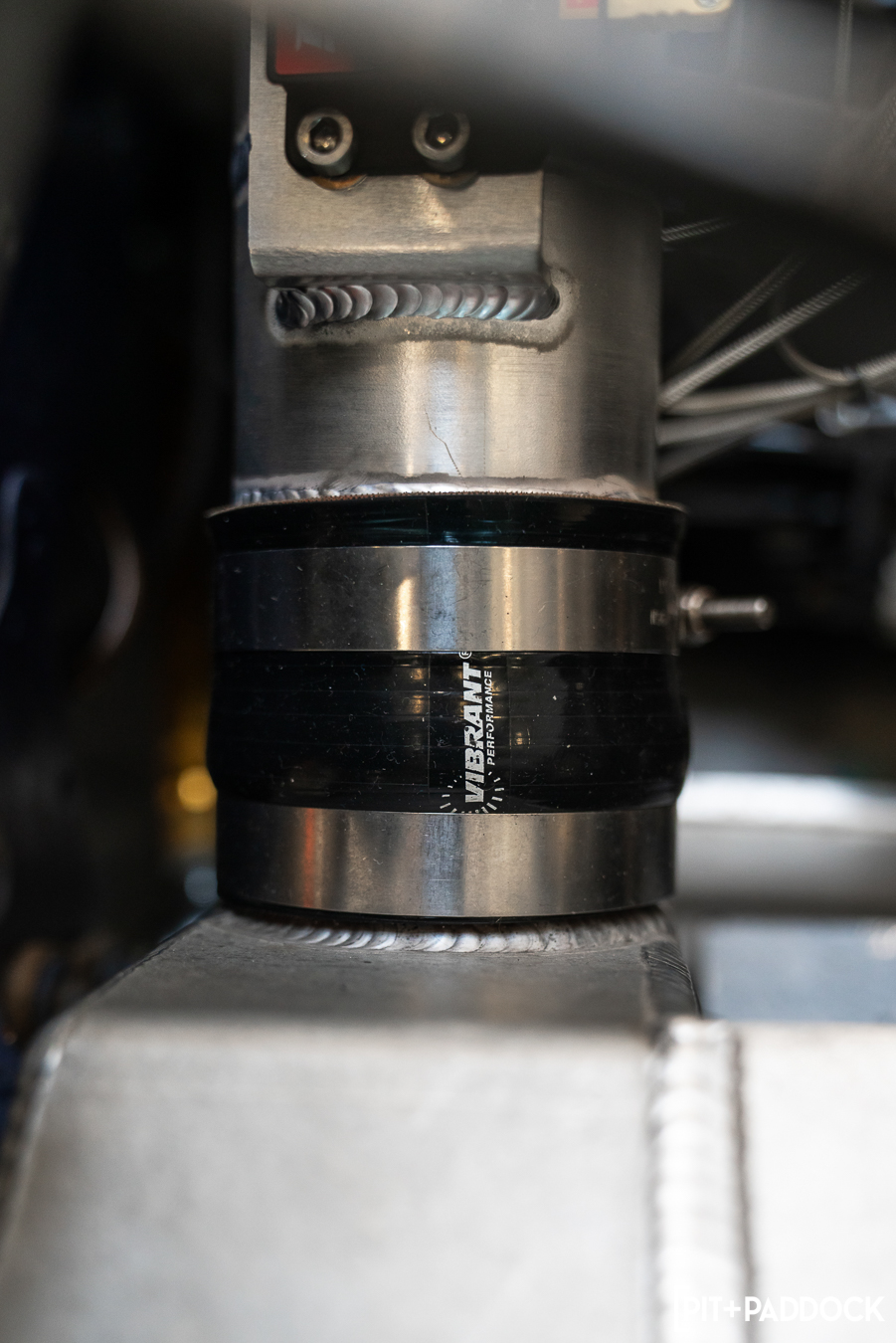 It’s a long list. Basically, every fitting and hose on the car, intercooler core, intercooler piping, HD clamps and couplers, T-bolt clamps, stainless piping for the exhaust, and a few other parts are all from Vibrant. So without them, and the support from them, the car wouldn’t be where it is either.