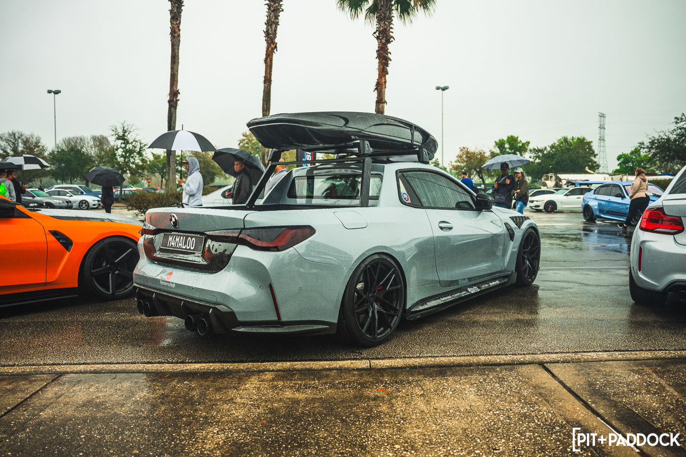 While a conventional car show might have been spoiled by rain, the downpour allowed us to show off an important party trick: the Ceramic Pro KAVACA PPF. As the weather event continued to pummel the Invasion grounds, the Pit+Paddock x Bilstein E91 GTS Tribute Built by PSI seemed to shrug it off, beading away the moisture as the boffins at Ceramic Pro intended.